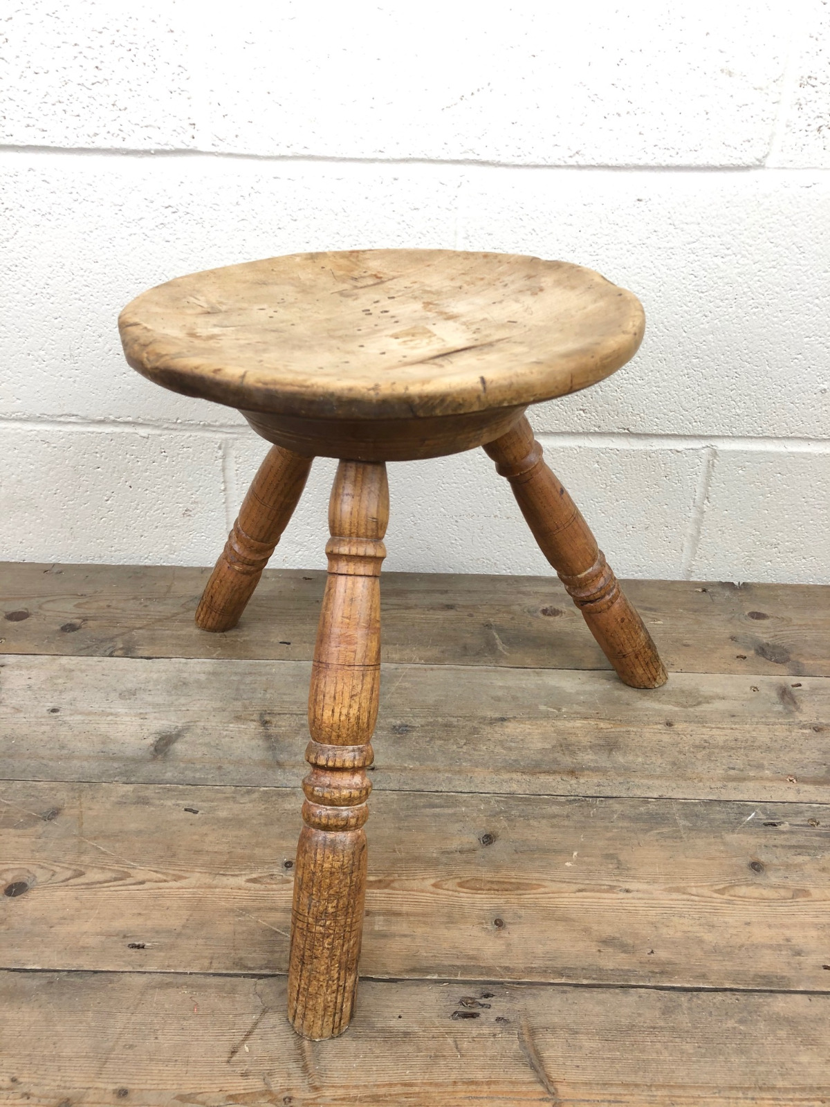 Antique Sycamore Three Leg Milking Stool