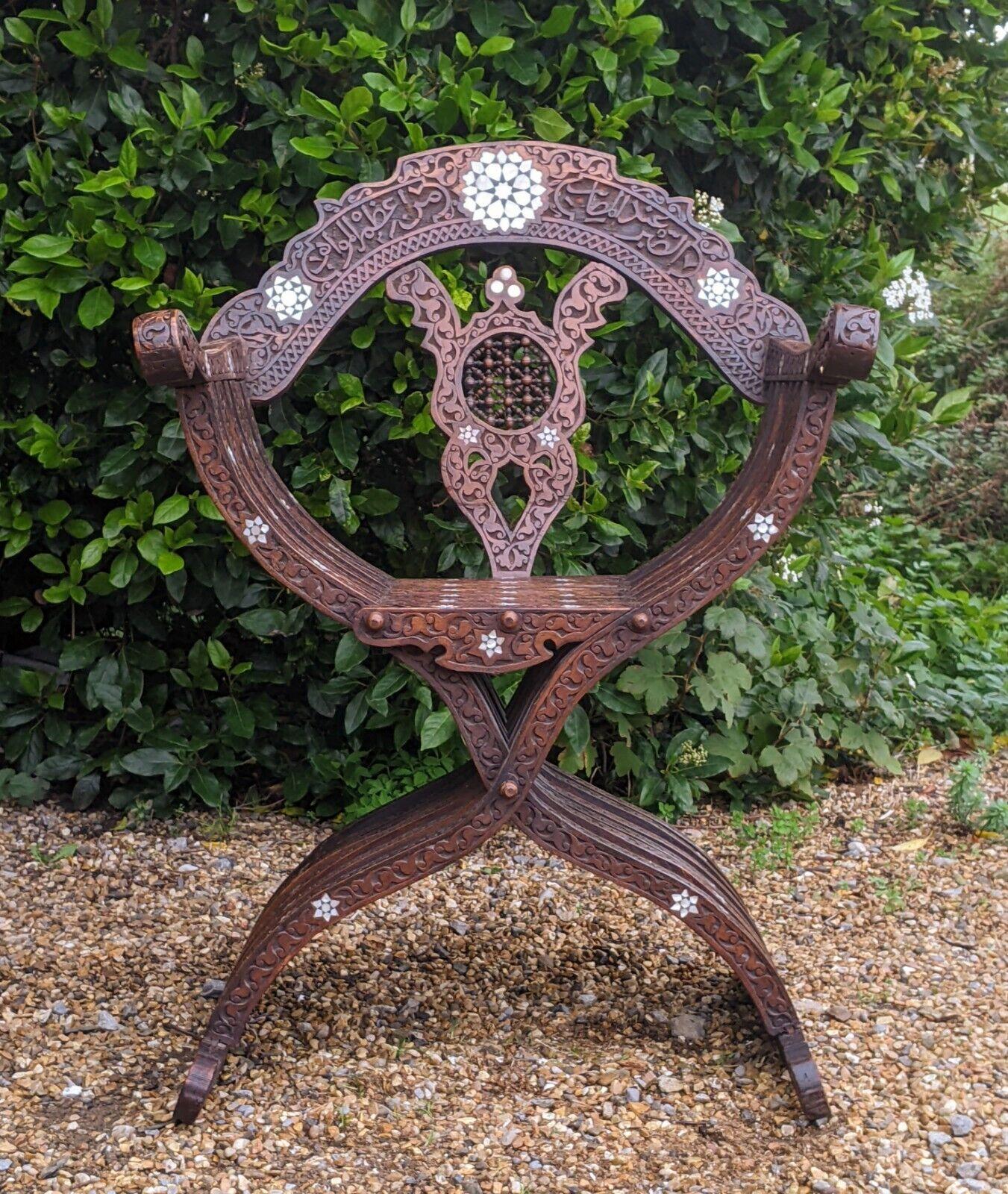 Antique Syrian Inlaid Savonarola Armchair (1 of 8)