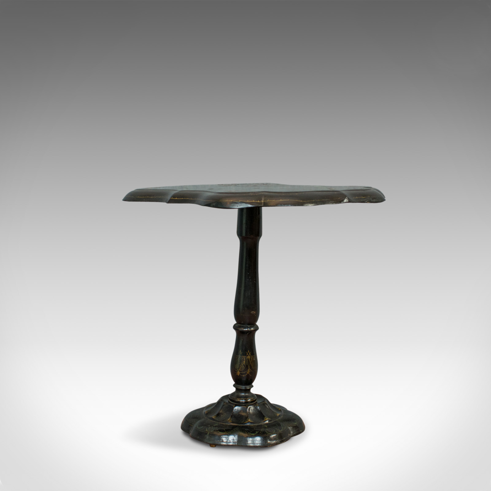 Antique Table, Ebonised, Papier Mache, Mother of Pearl, Side, Lamp, Wine, Tilt