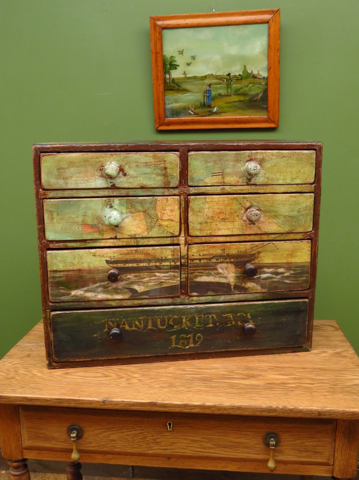 Antique Table Top Drawers Painted & Decoupaged with Nantucket Whaling Scene