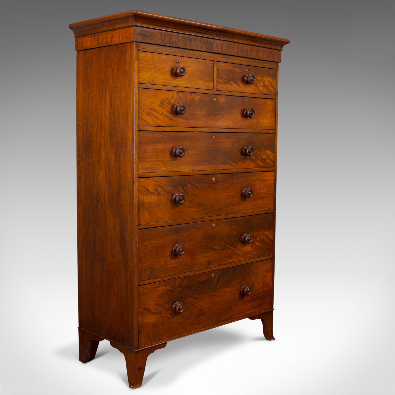 Antique Tallboy, English, Flame Mahogany, Tall Chest of Drawers, Victorian, 1850