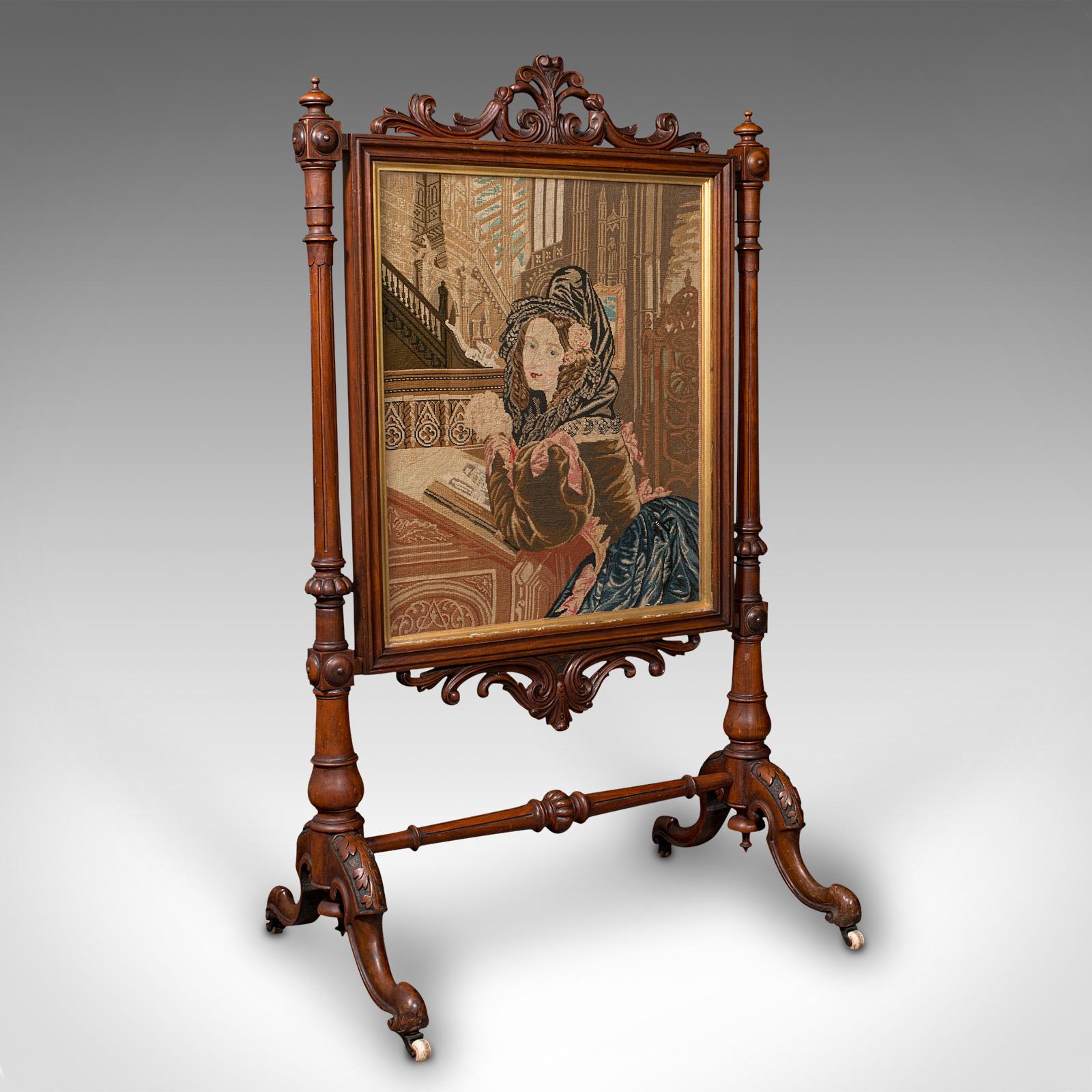 Antique Tapestry Fire Screen, English, Walnut, Needlepoint, Fireside, Victorian (1 of 11)