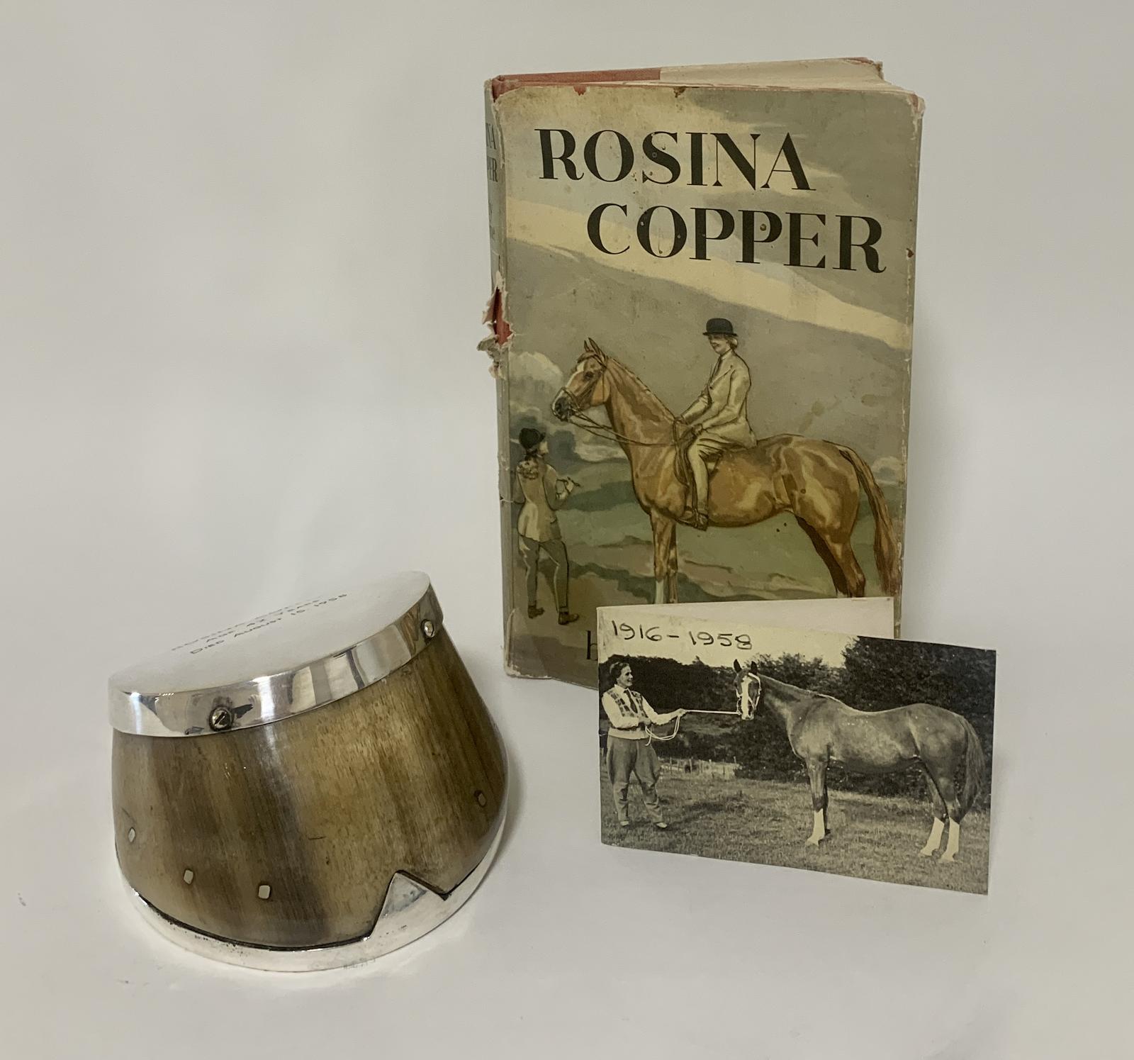 Antique Taxidermy Silver Mounted Horse Hoof of Rosina Copper with Book and Photo
