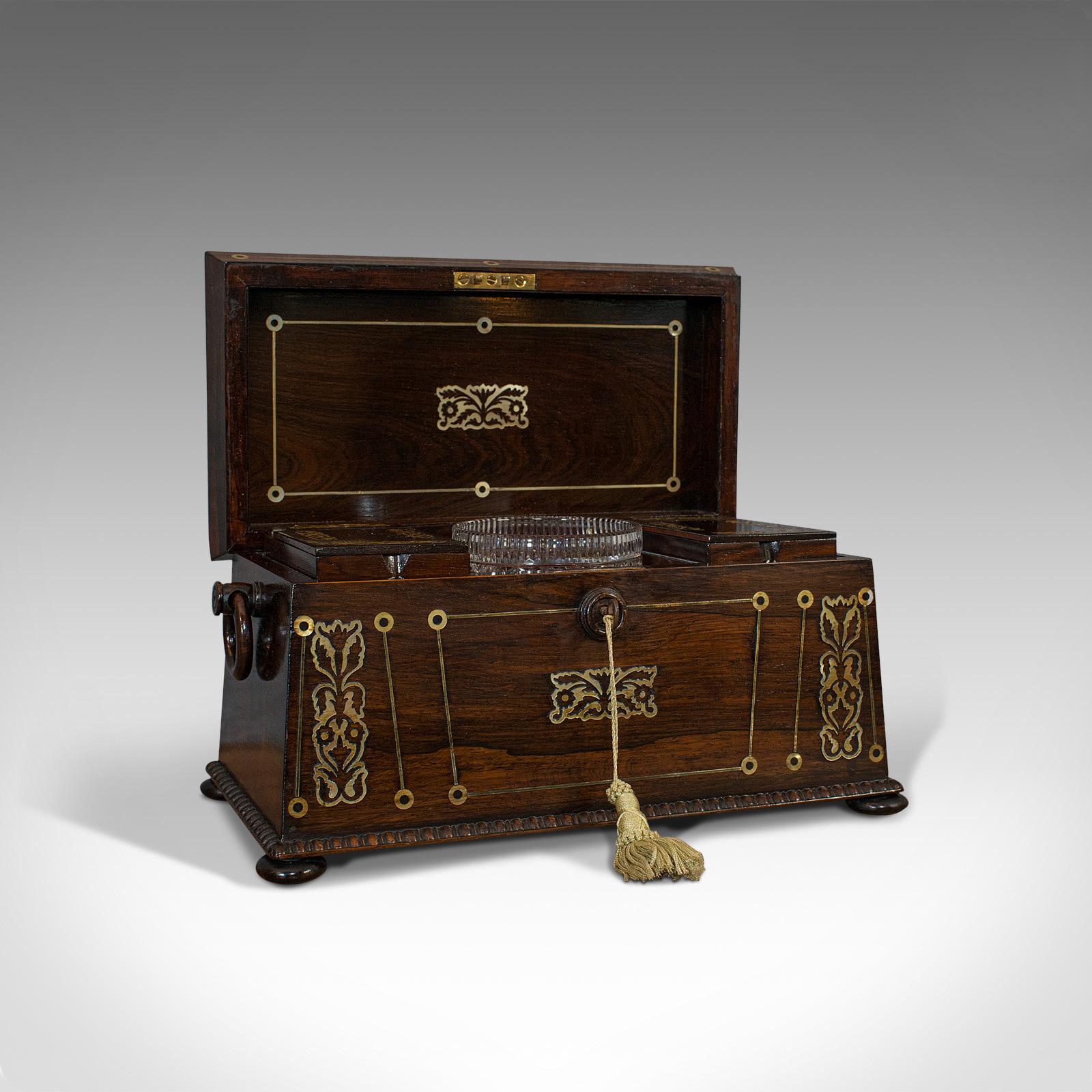 Antique Tea Caddy, English, Rosewood, Chest, Thomas of London, Regency c.1820