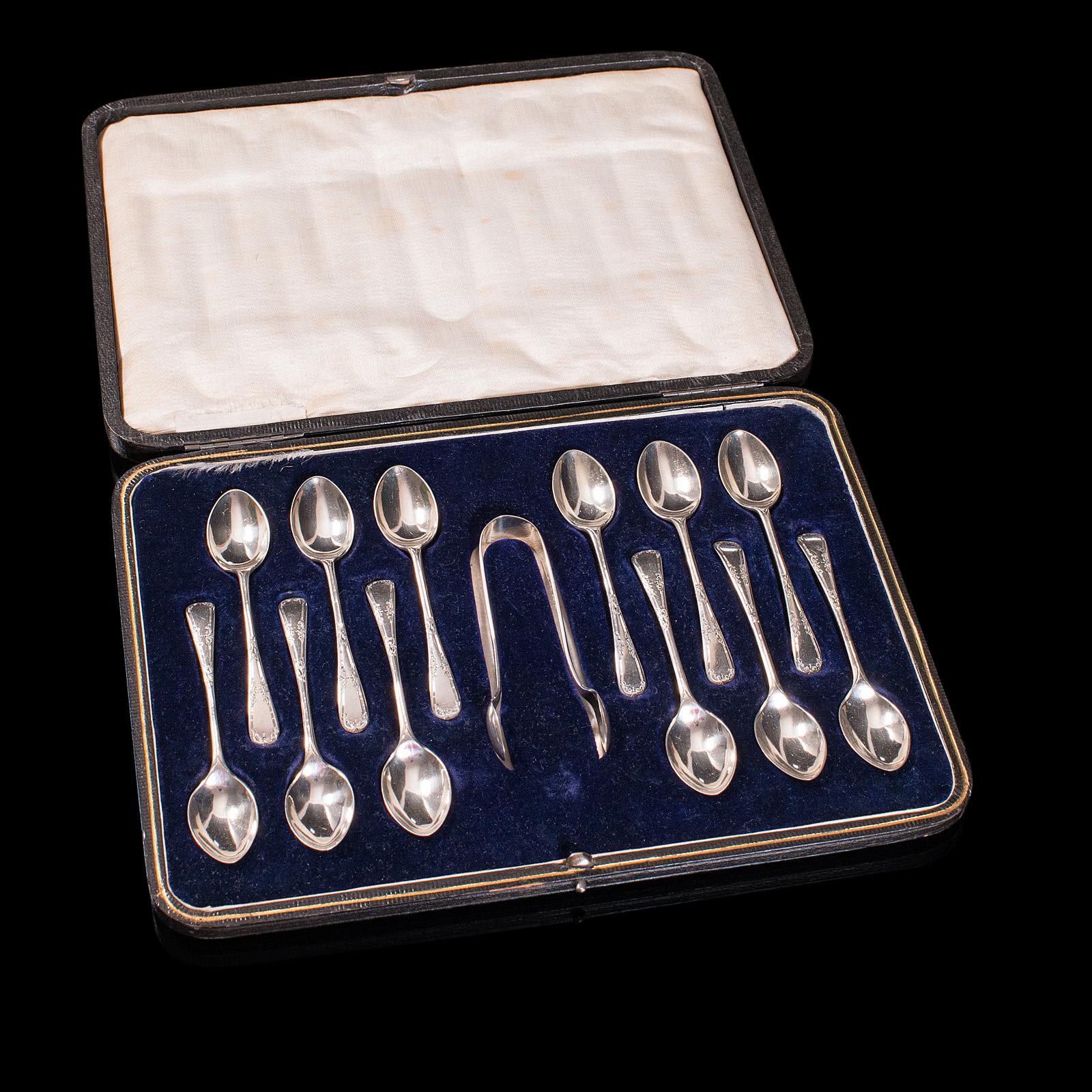 Antique Tea Spoon Service, English, Silver, WS Savage, Sheffield, Hallmark 1917 (1 of 12)