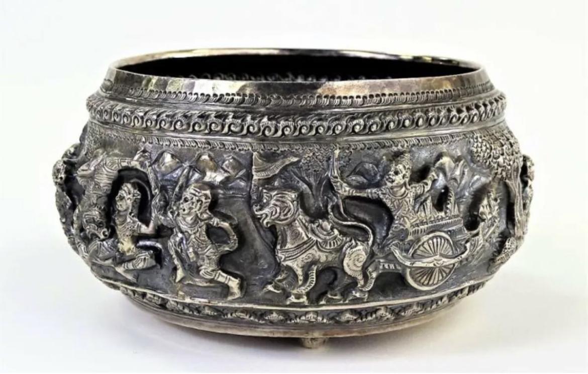 Antique Thai Silver Circular Bowl - Early 20th Century