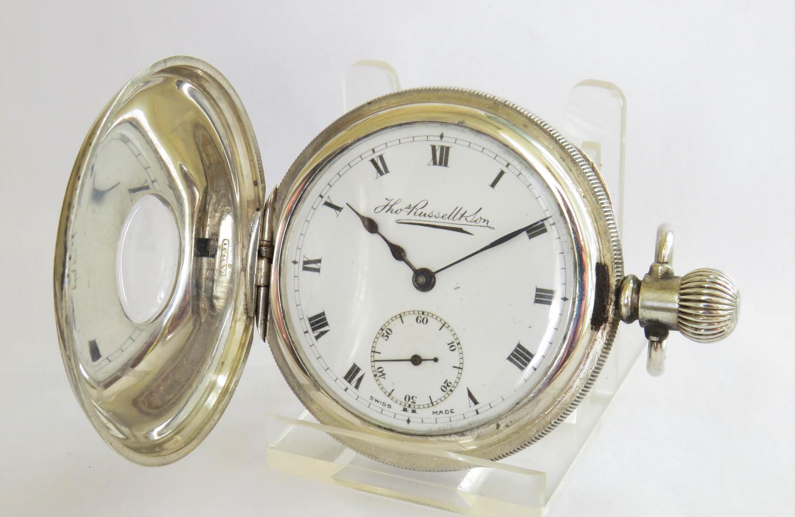 Antique Thomas Russell Silver Half Hunter Pocket Watch