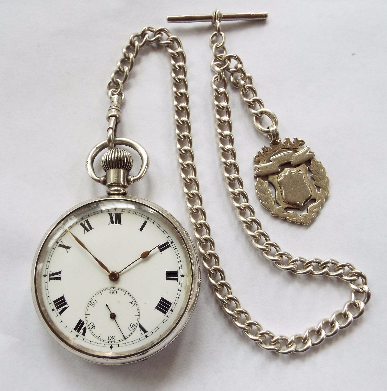 Antique Thommen Silver Open Faced Pocket Watch and Chain