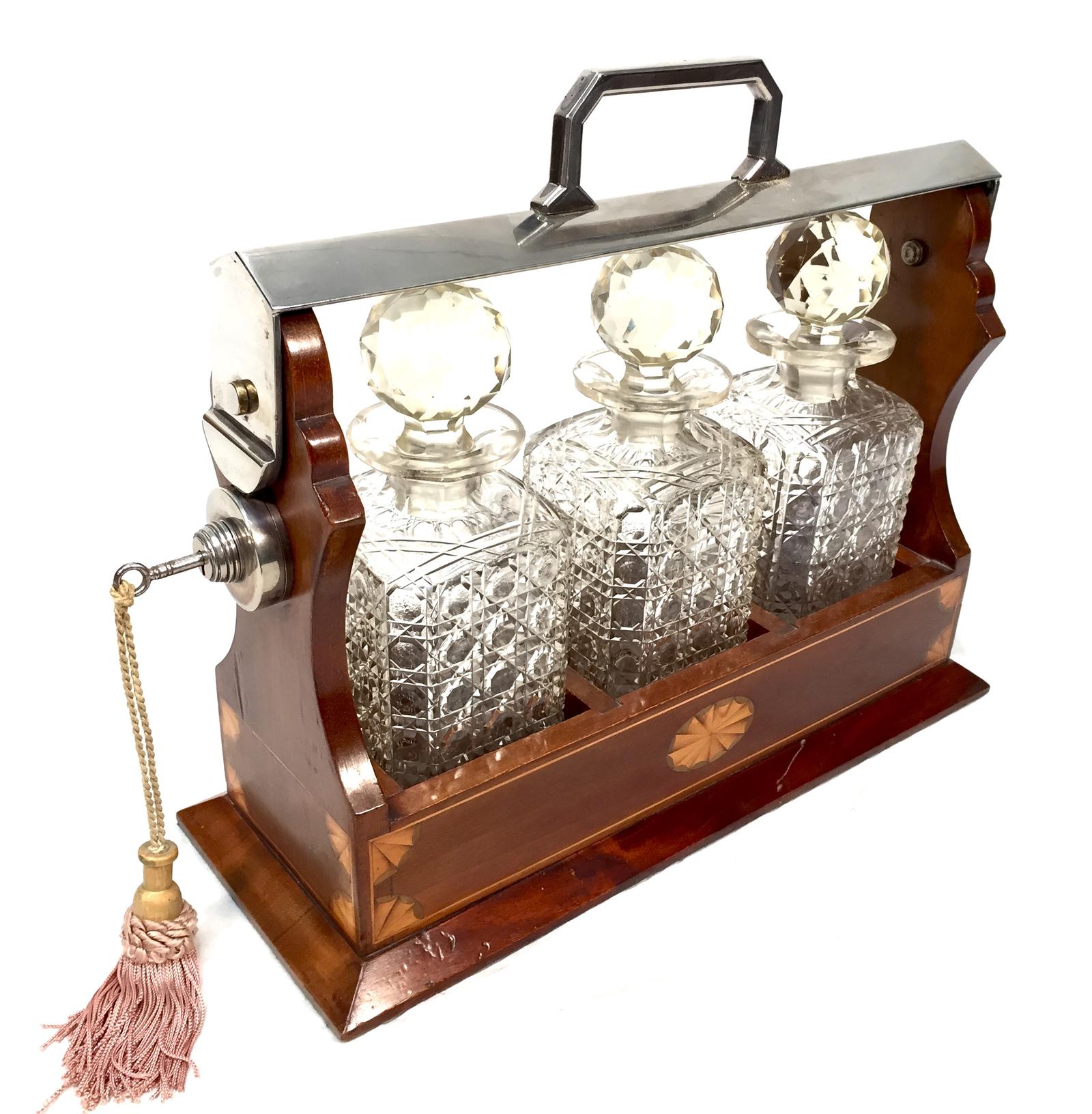 Antique Three Cut Crystal Decanter Tantalus c.1890 (1 of 10)