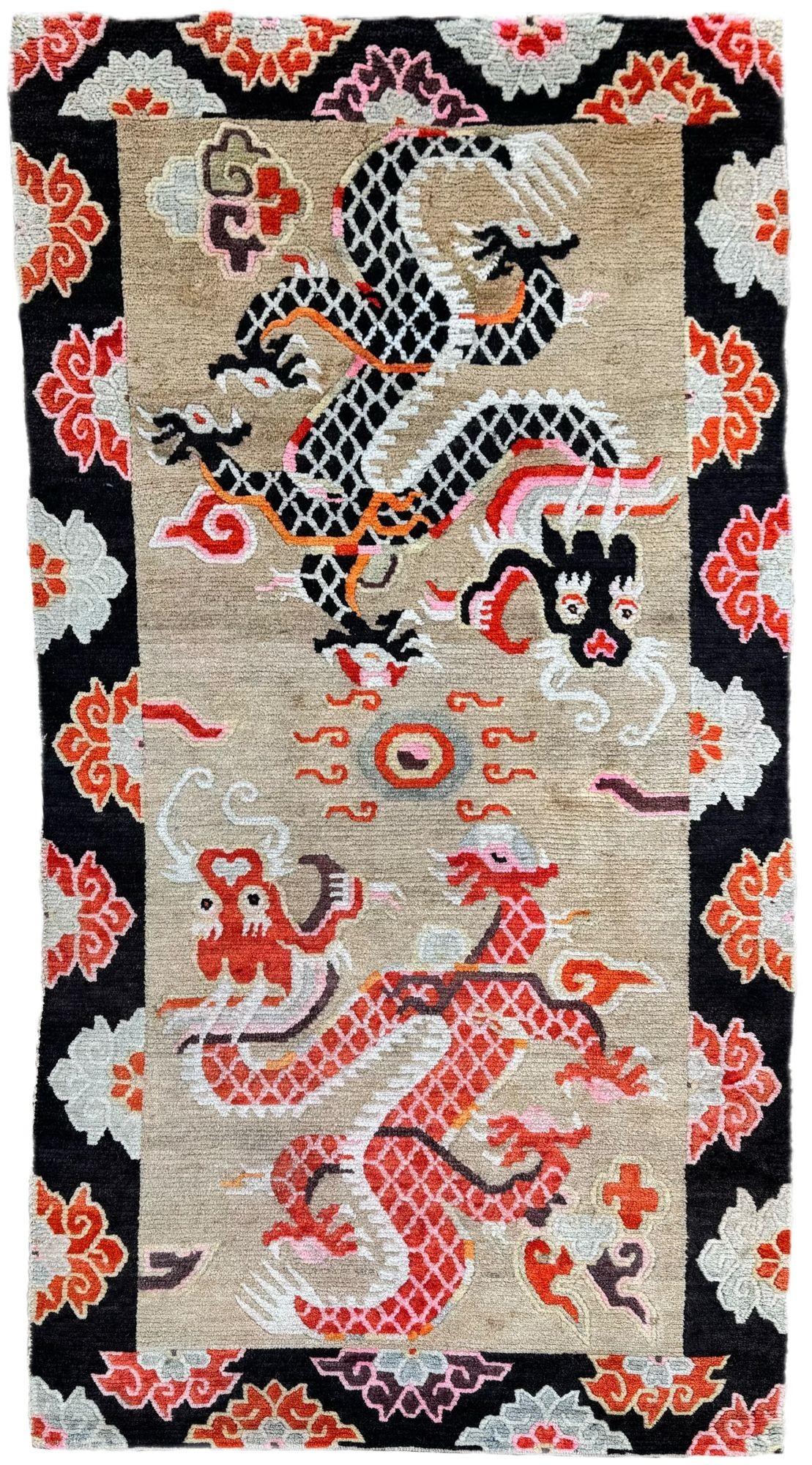 Antique Tibetan Dragon Rug