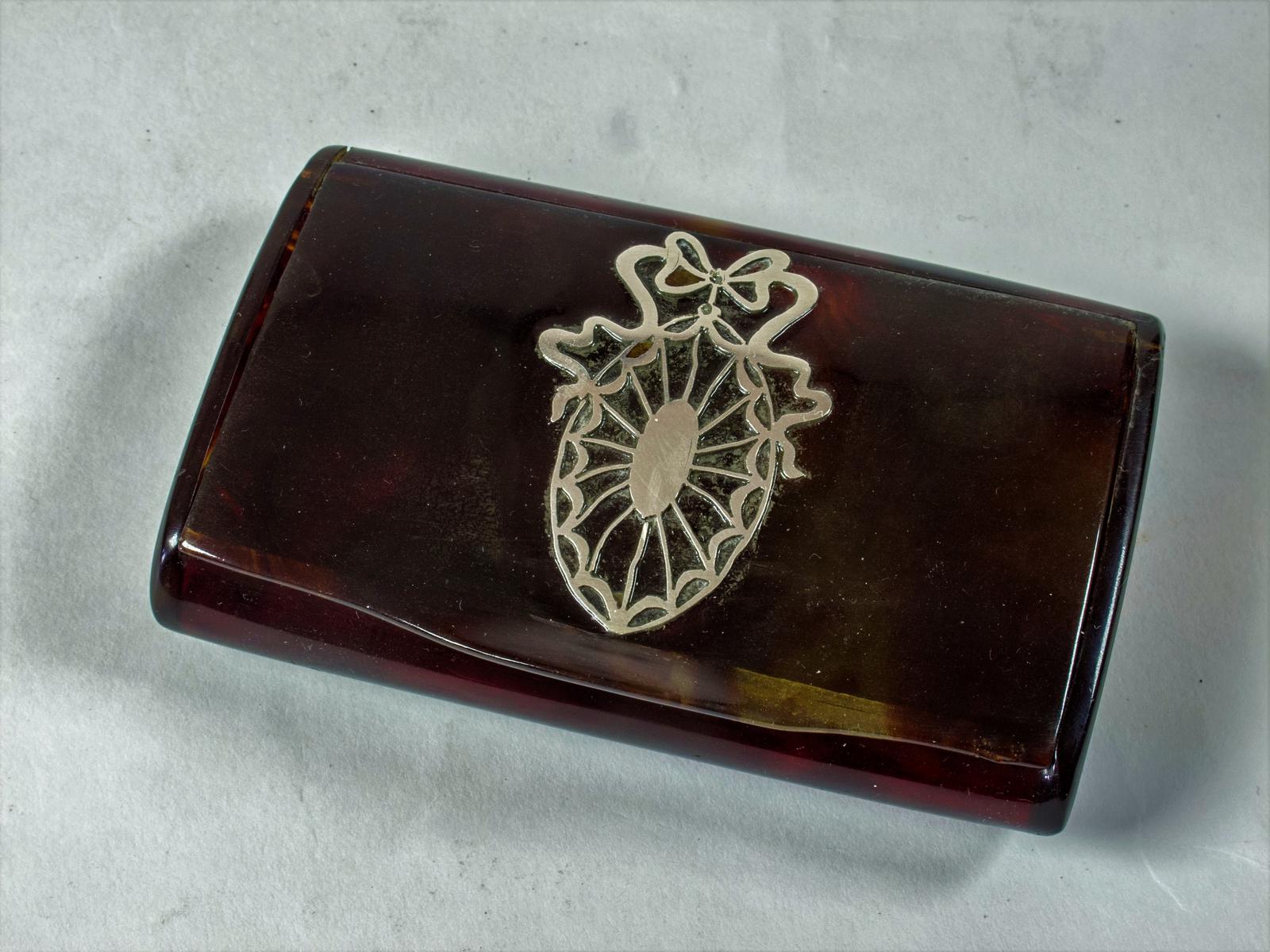 Antique Tortoise Shell & Silver Ladies Hinged Sovereign / Patch Box