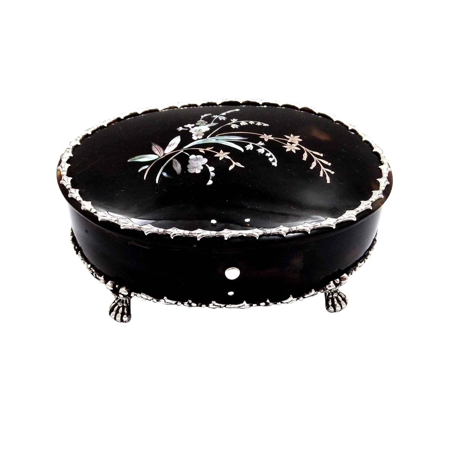 Antique Tortoiseshell & Silver Trinket Box 1907