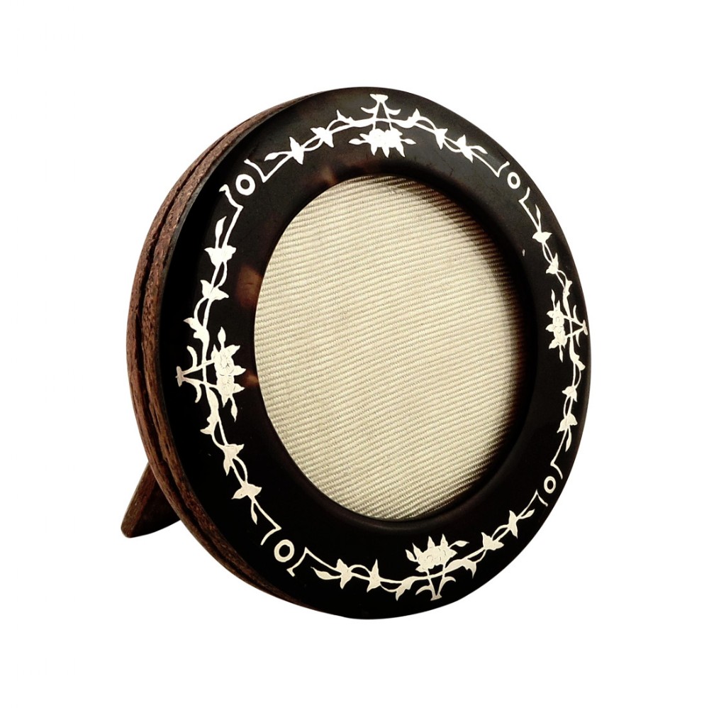 Antique Tortoiseshell with Silver Pique Photo Frame c.1900