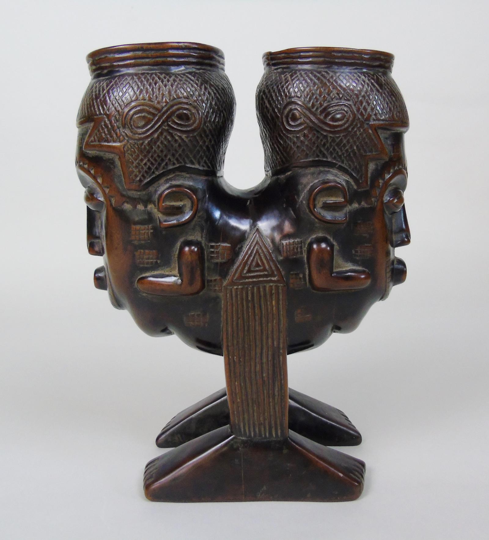 Antique Tribal Kuba Janus Head Palm Wine Cup