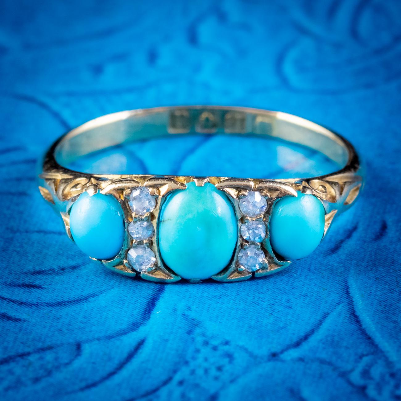 Antique Turquoise Diamond Ring 18ct Gold Dated 1915