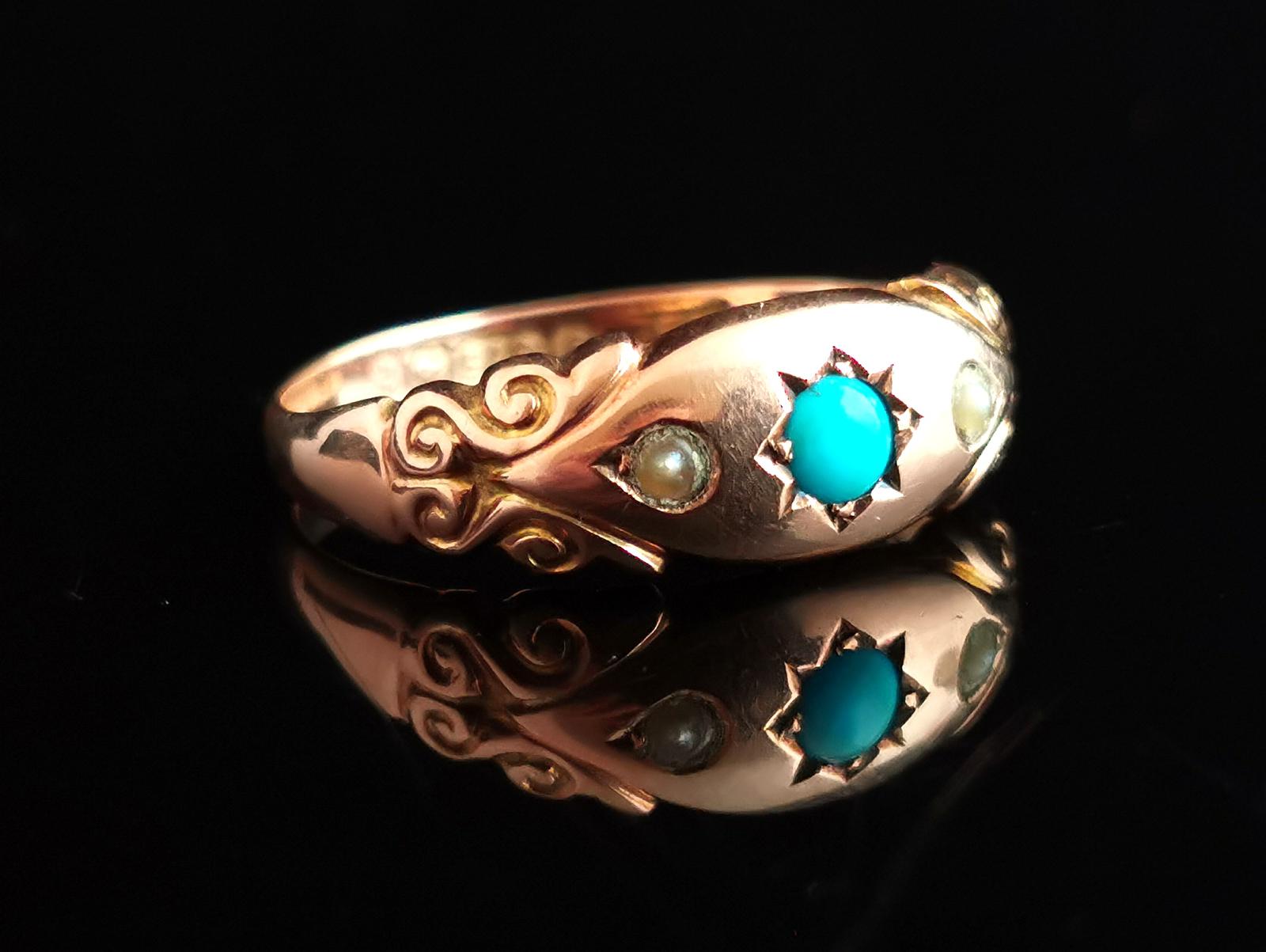 Antique Turquoise & Pearl Ring, 9ct Gold