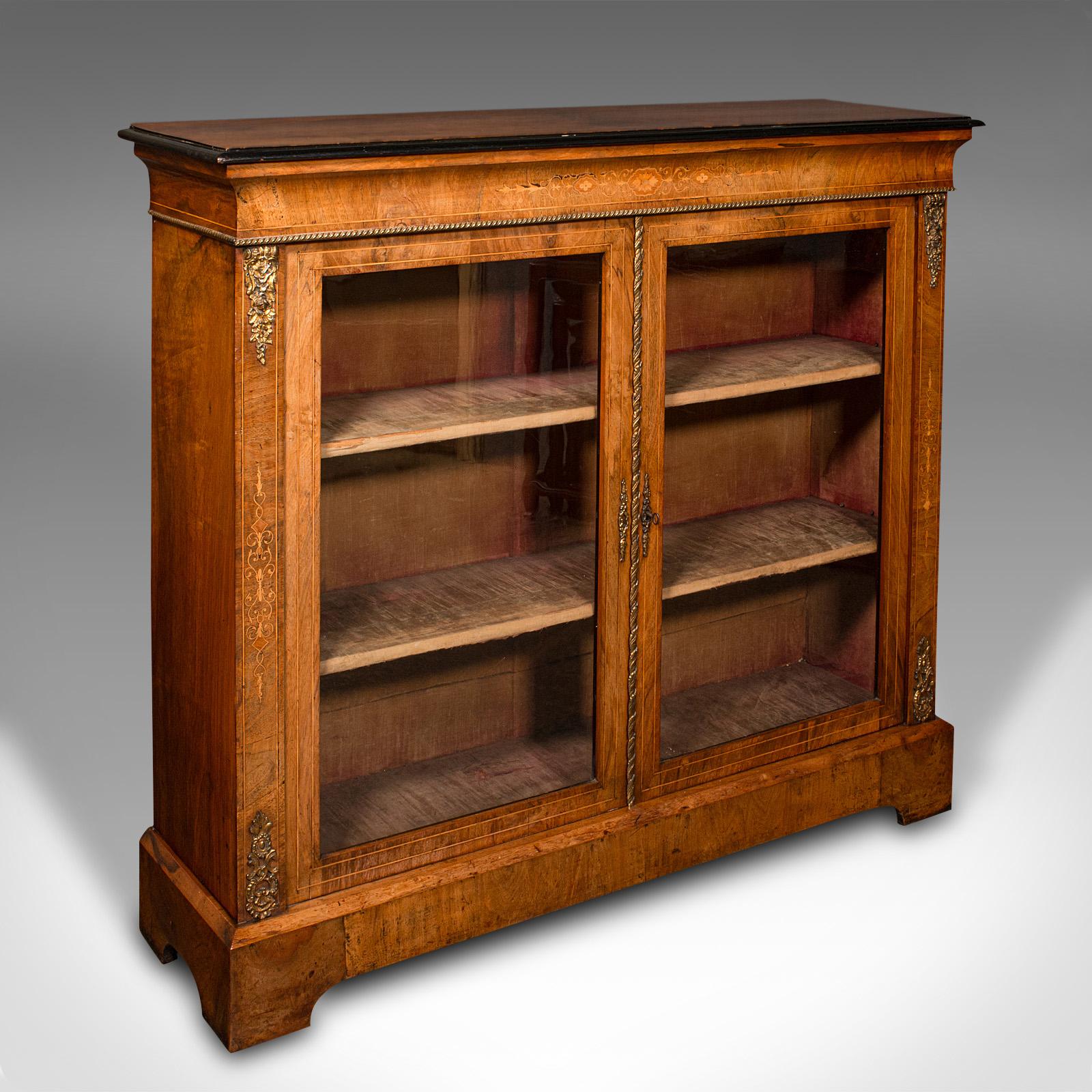 Antique Twin Pier Cabinet, English, Walnut, Glazed Bookcase, Display, Victorian