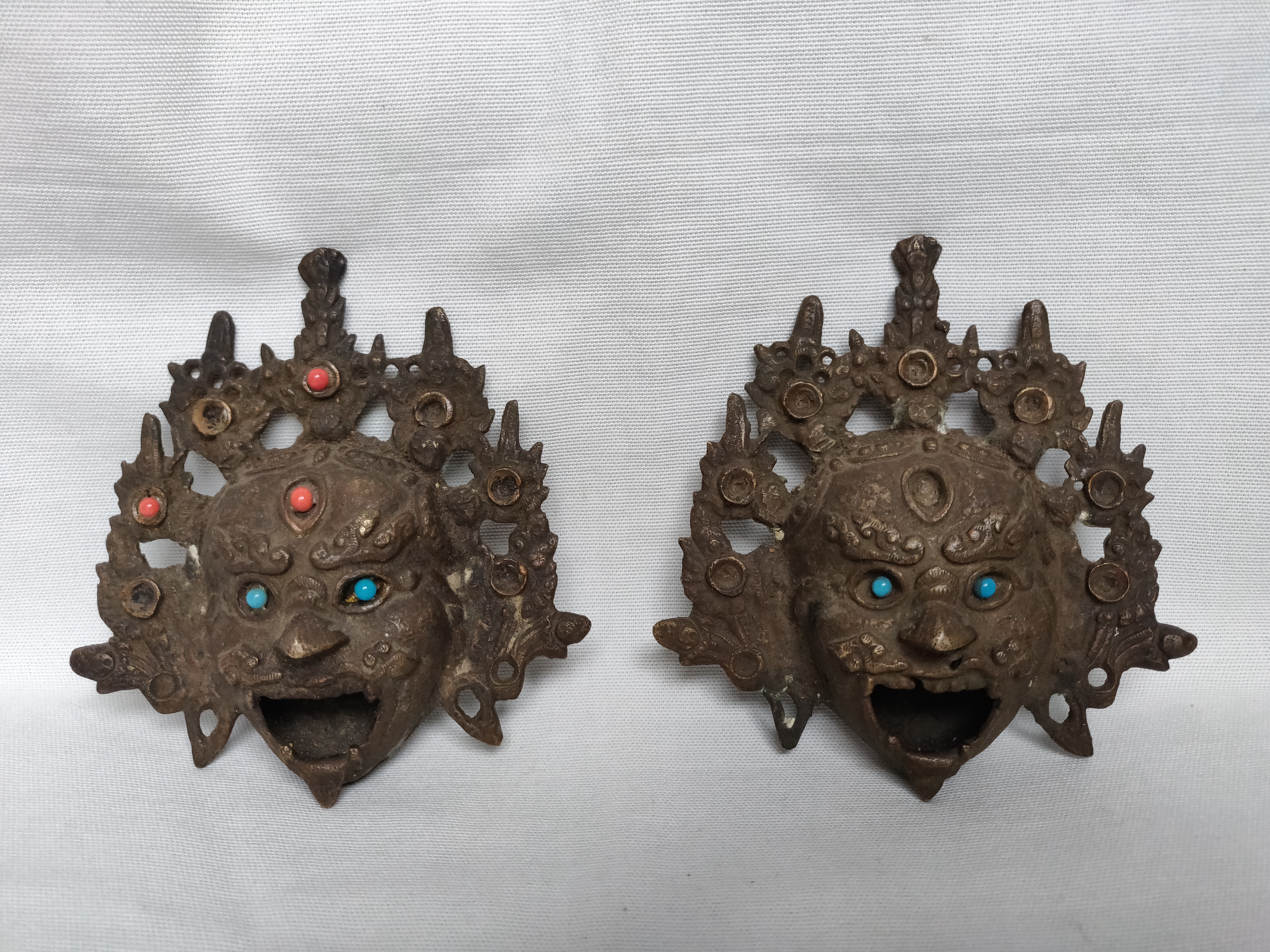 Antique Two Tibetan Buddhism Bronze Masks / Censers Head of Mahakala