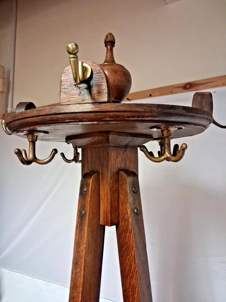 Antique Unusual Revolving Oak Coat Hat Stand