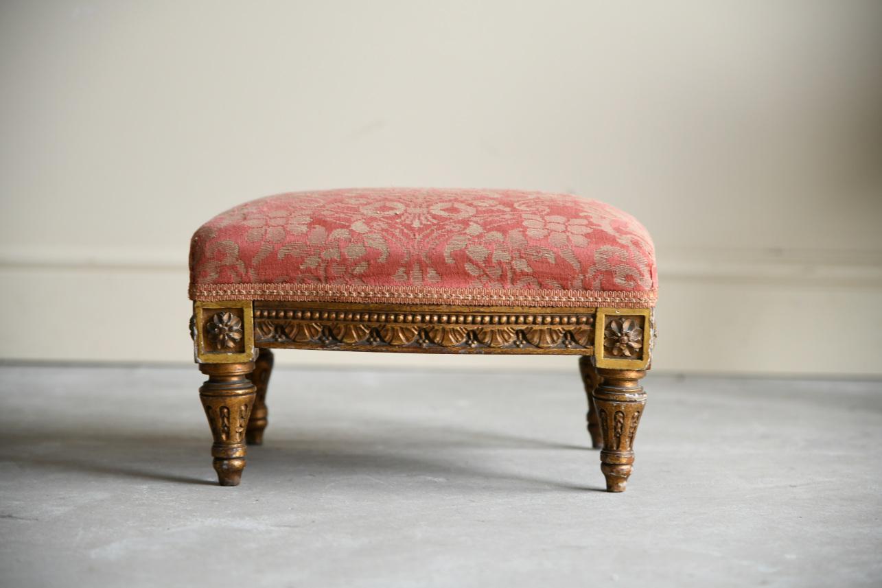 Antique Upholstered Gilt Frame Stool