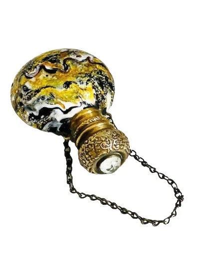 Antique Venetian Gold & Silver Aventurine Glass Chatelaine Perfume Scent Bottle Jewelled Lid Circa 1880