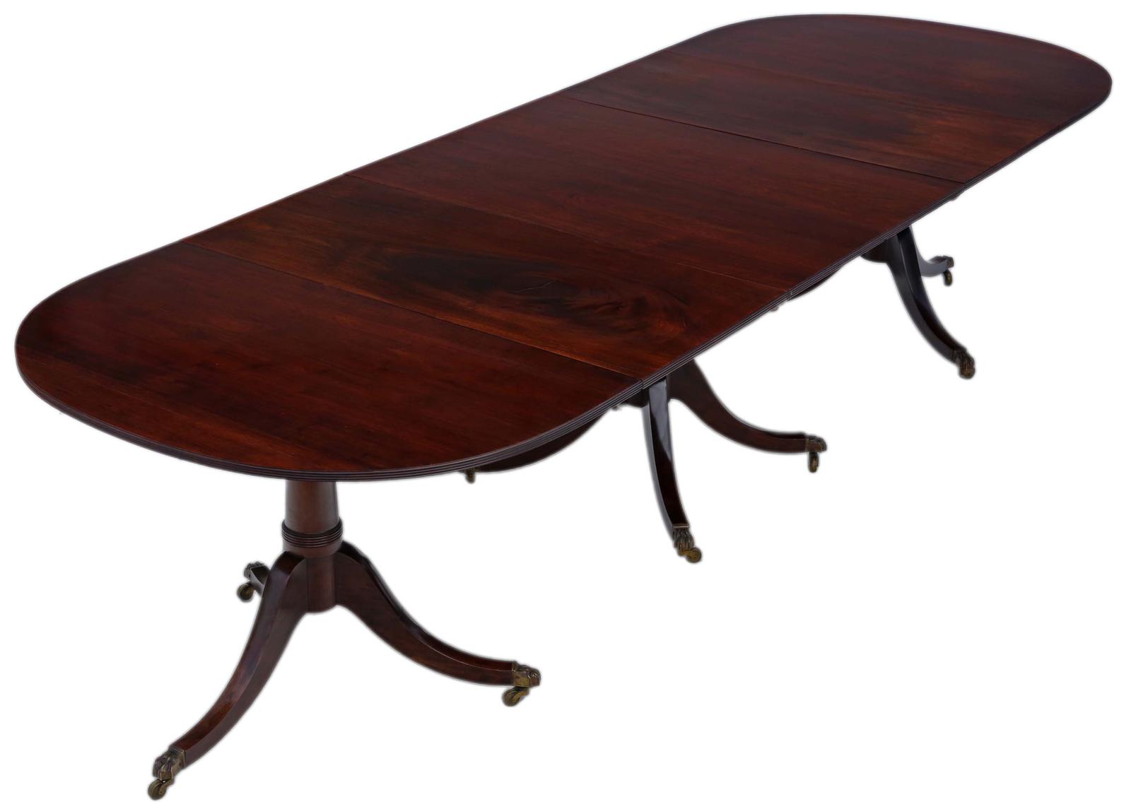 Antique Very Large Fine Quality ~10' Cuban Mahogany Extending Dining Table Triple Pedestal c.1820