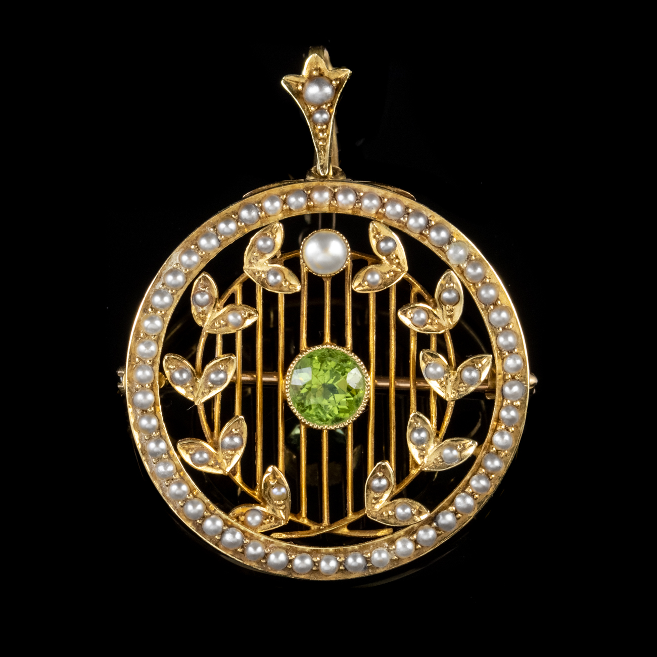 Antique Victorian 0.75ct Peridot Pendant Brooch 15ct Gold c.1900