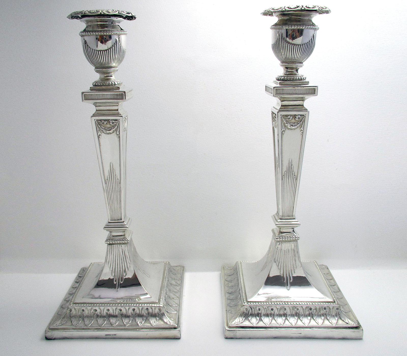 Antique Victorian 10" tall ADAM STYLE Silver Plated English Candlesticks Candle Holders