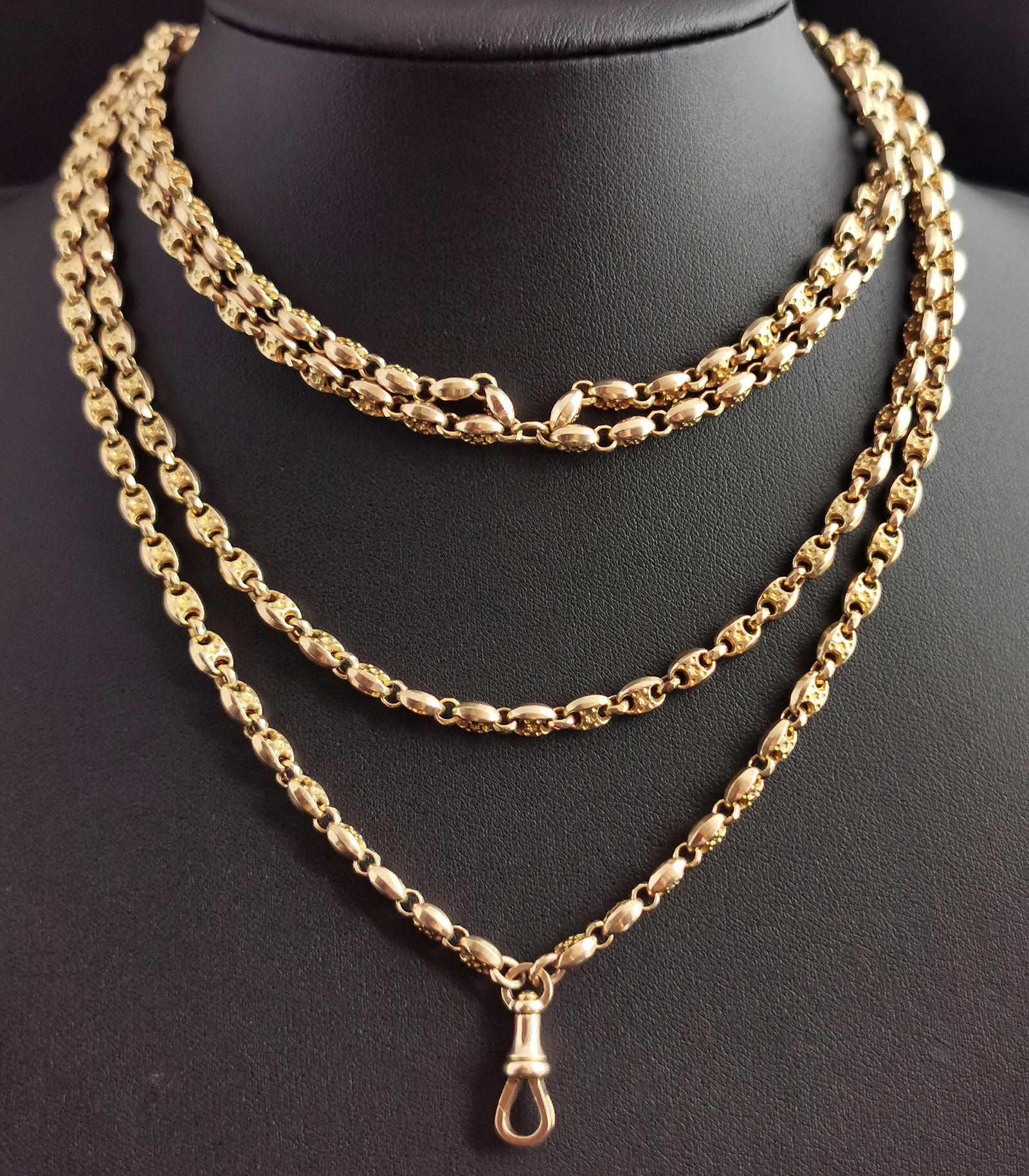 Antique Victorian 10ct Gold Longuard Chain, Muff Chain Necklace, Fancy Link
