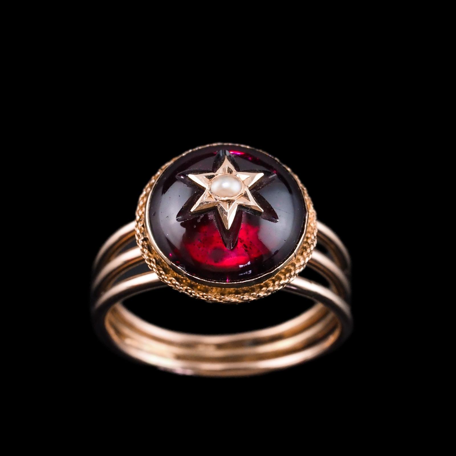 Antique Victorian 14ct Gold Garnet Star Cabochon Ring with Seed Pearl c.1880 (1 of 18)
