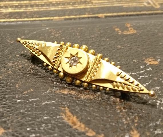 Antique Victorian 15ct Gold & Diamond Brooch, Boxed