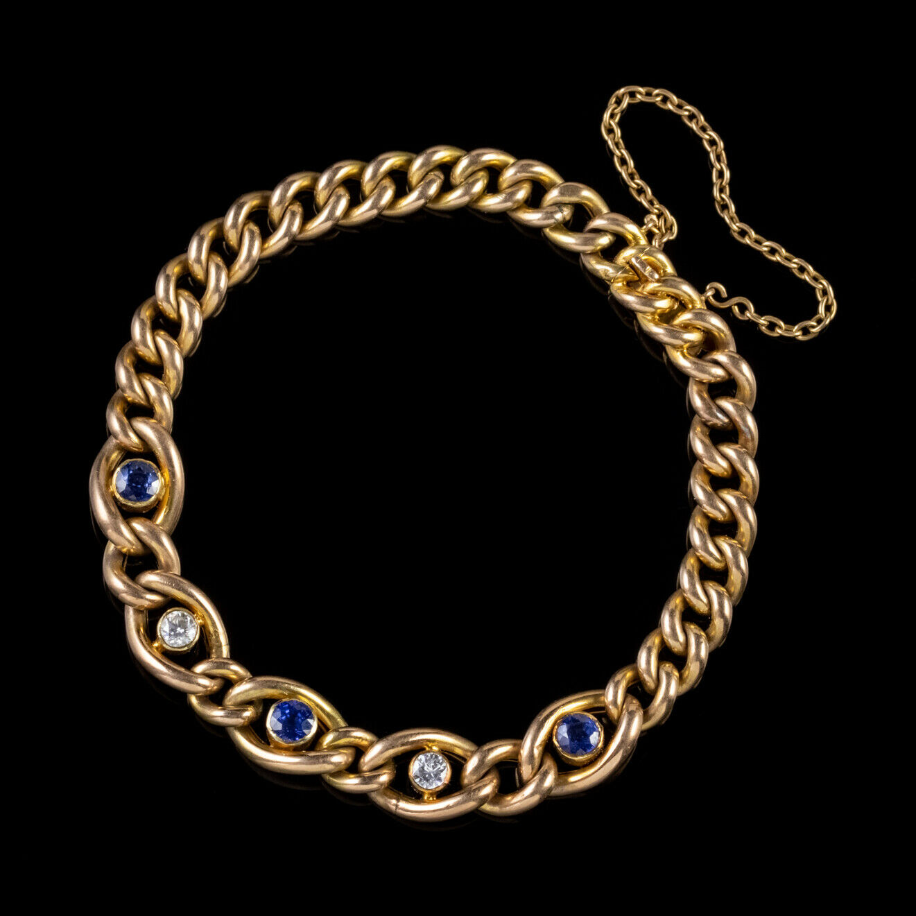 Antique Victorian 15ct Gold Sapphire Diamond Bracelet C.1900