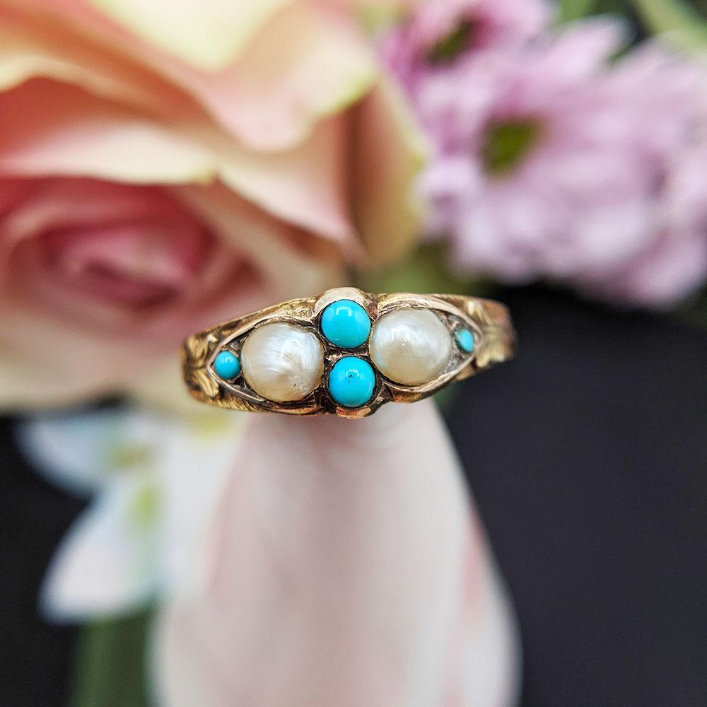Antique Victorian 15ct Gold Turquoise & Pearl Ring