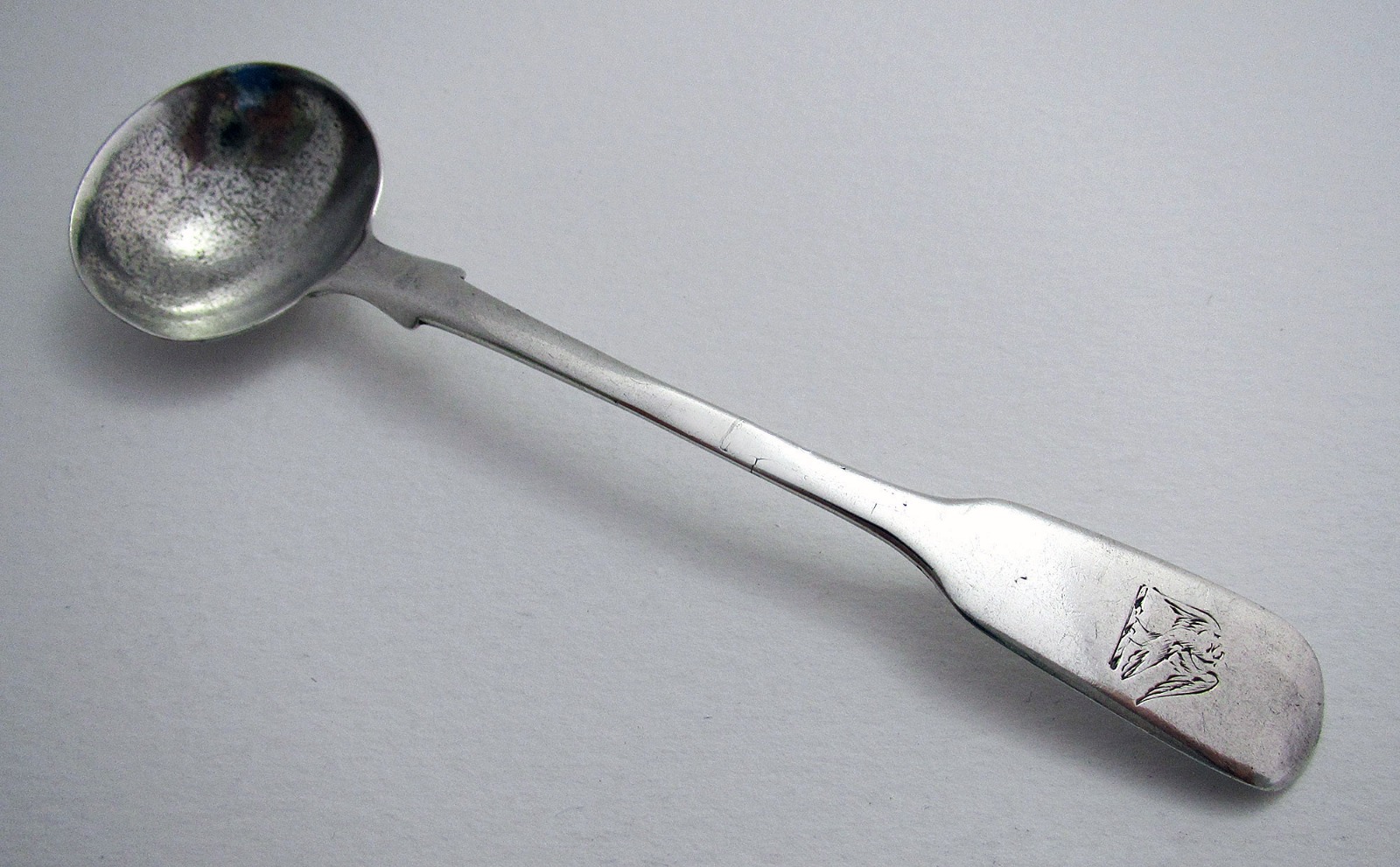 Antique Victorian 1852 Solid Sterling Silver English Salt Mustard Pot Condiment Spoon. Charles Boyton