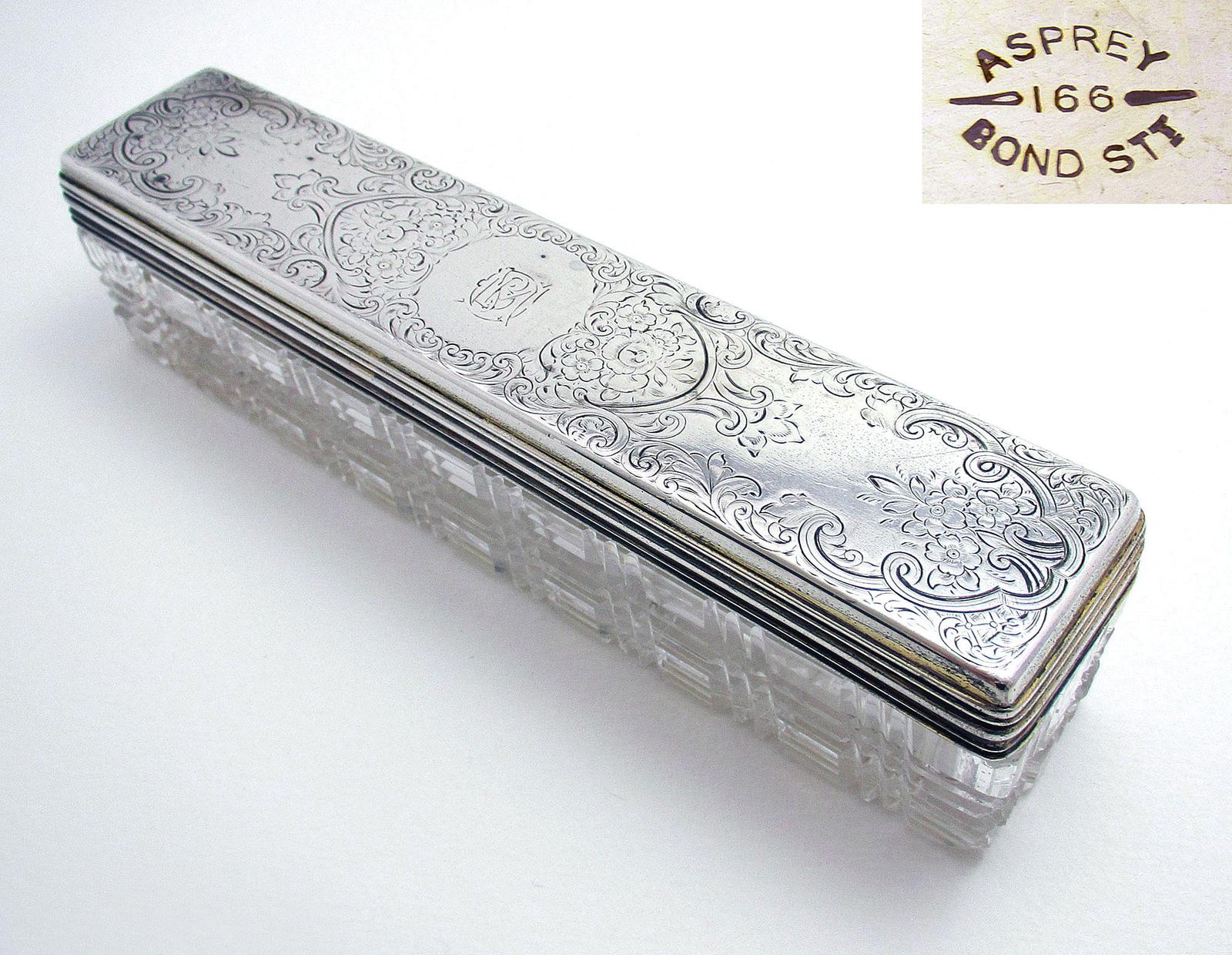 Antique Victorian 1863 Asprey Solid Sterling Silver Lidded Top & Cut Glass Vanity Trinket Dressing Table Box Jar Pot Container