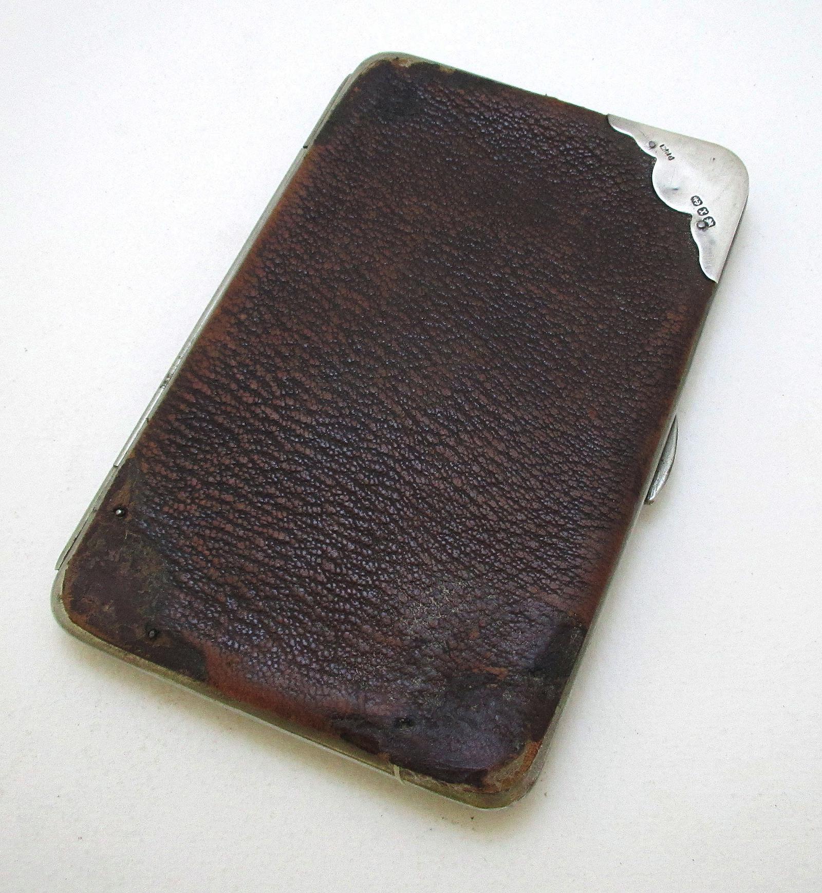Antique Victorian 1897 Solid Sterling Silver Mounted & Leather Wallet Purse Name Stamp Card Case