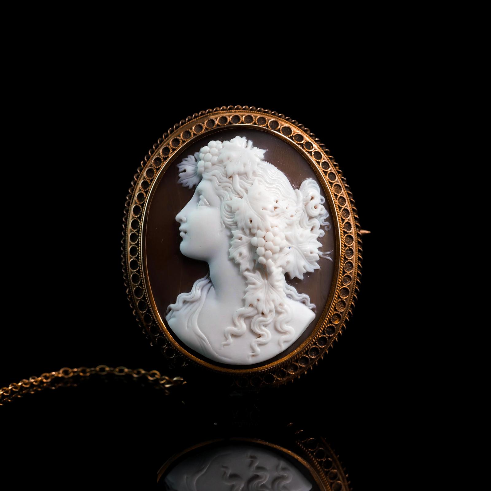 Antique Victorian 18ct Gold Shell Cameo Brooch with Figural Maenad / Bacchante - c.1860 (1 of 22)