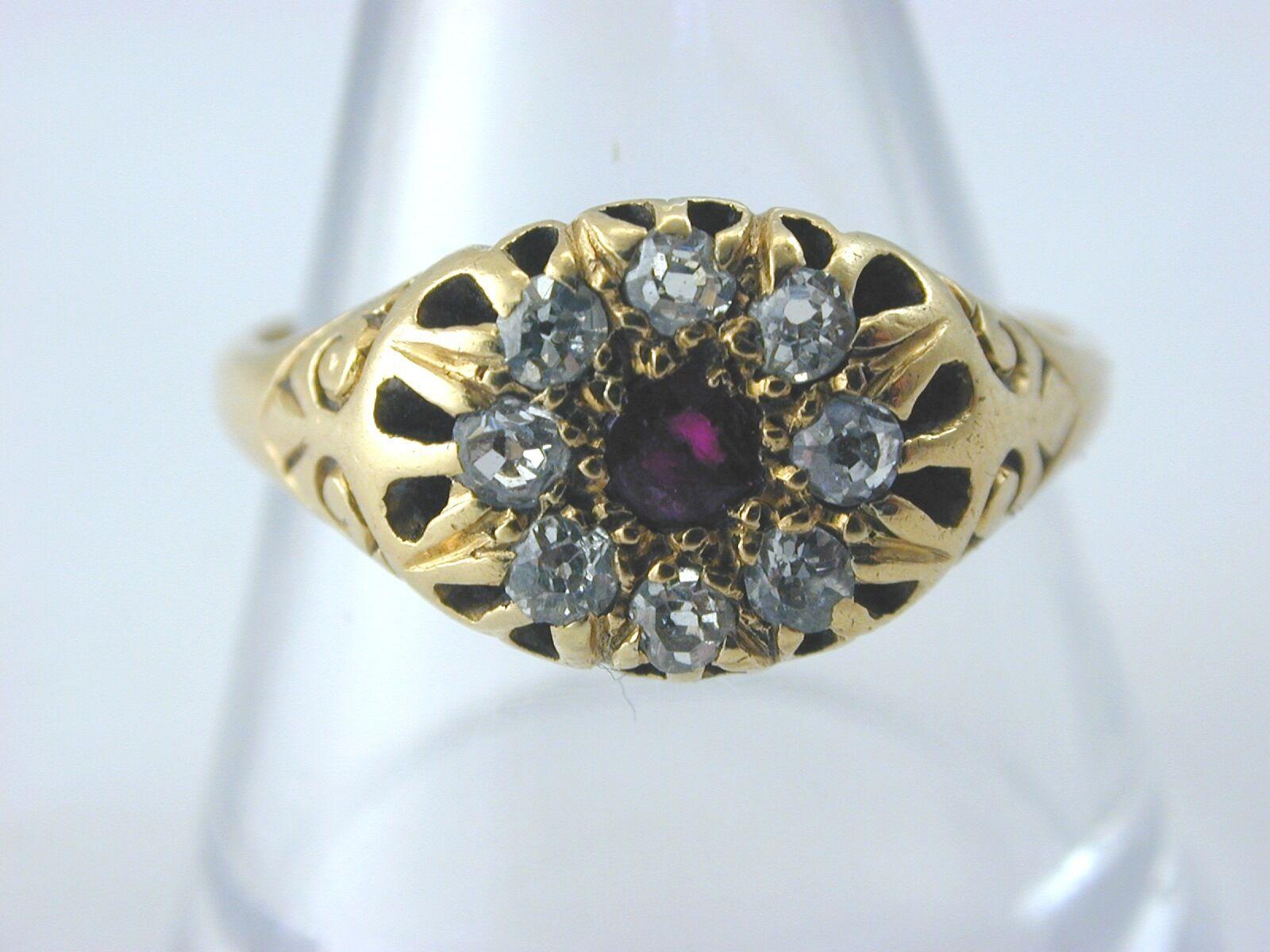Antique Victorian 18ct Ruby Diamond Cluster Ring