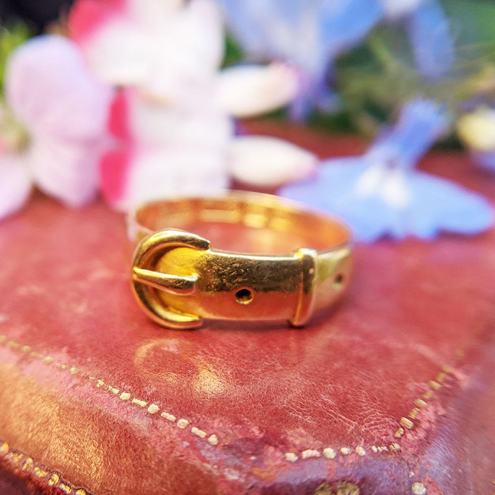 Antique Victorian 18ct Yellow Gold Ladies Buckle Ring, Belt Band