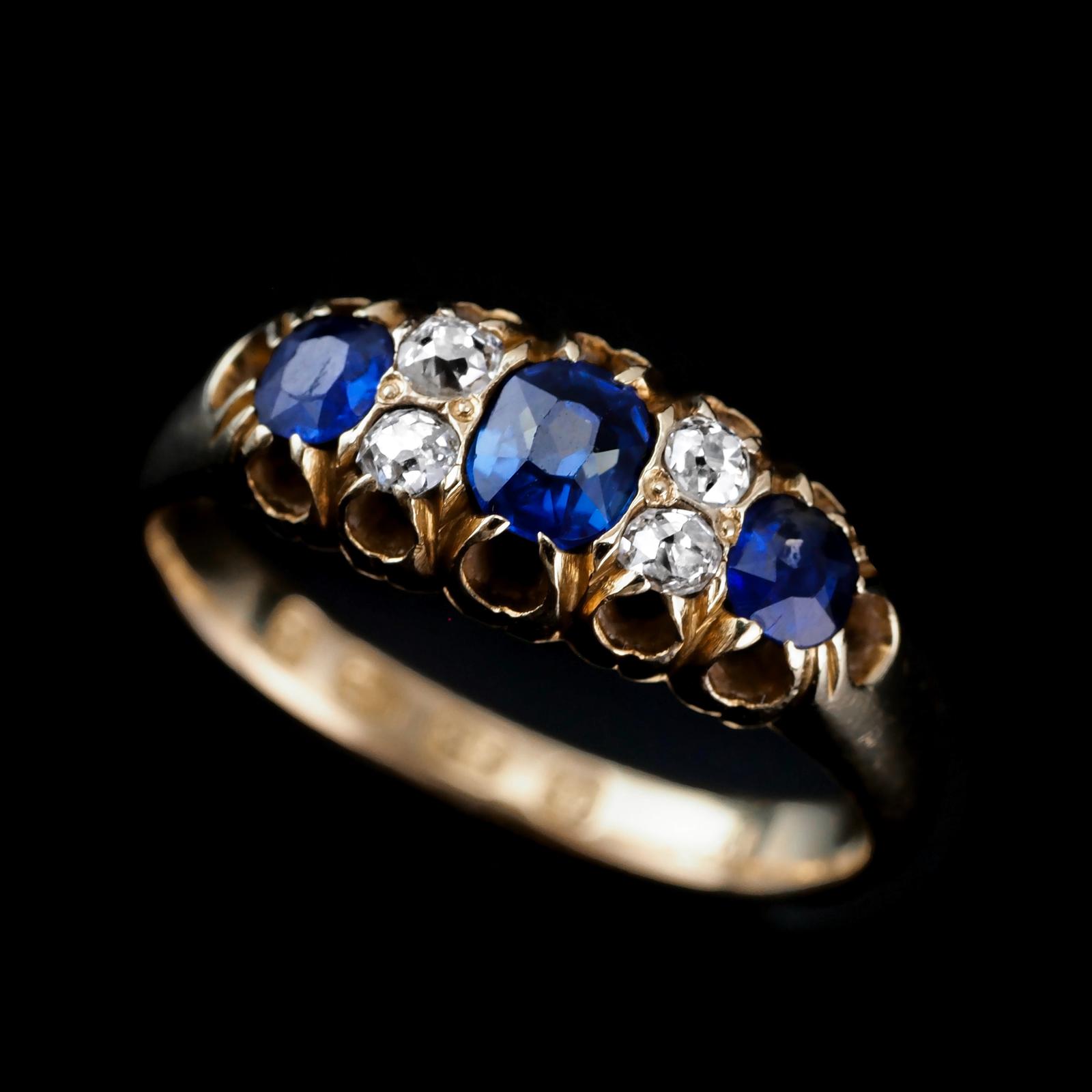 Antique Victorian 18k Gold Sapphire & Diamond Ring - Chester 1882