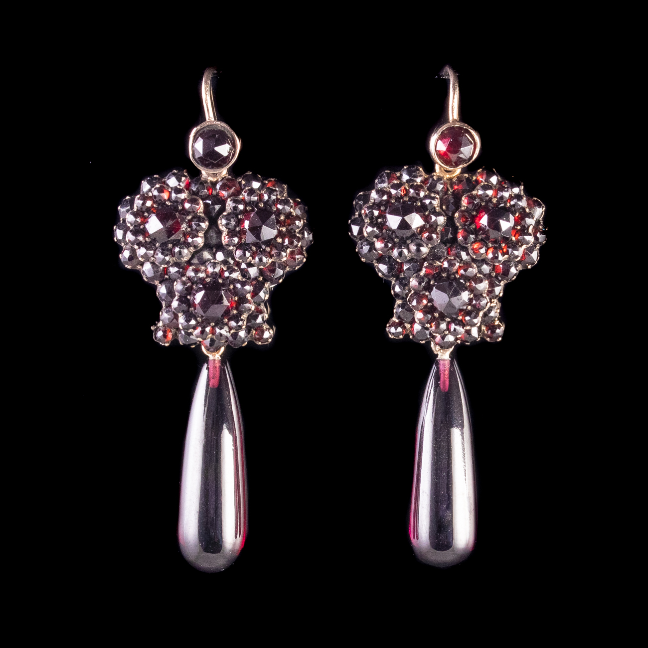 Antique Victorian 22ct Garnet Drop Earrings 9ct Gold c.1890