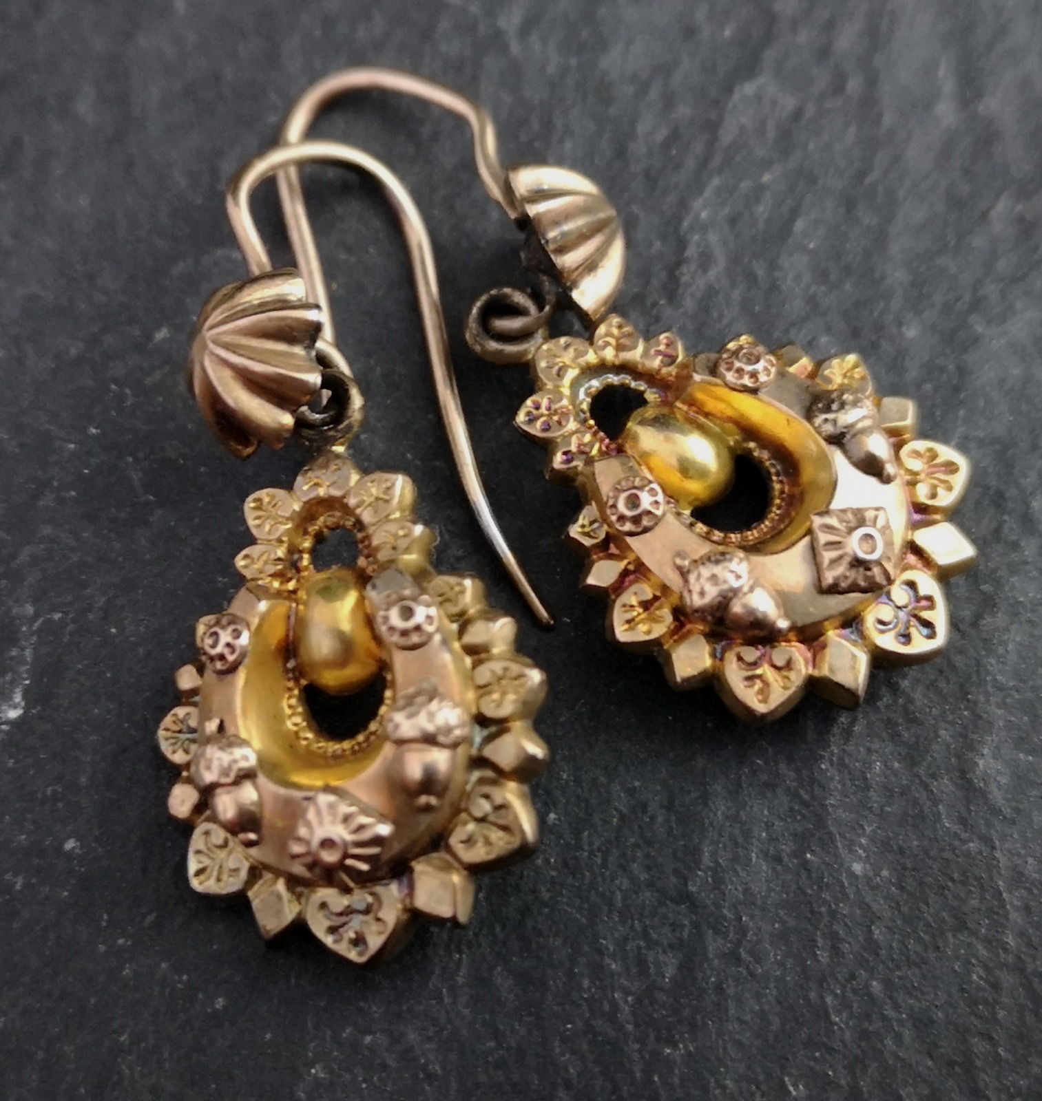 Antique Victorian 22ct Gold Drop Earrings, Horseshoe