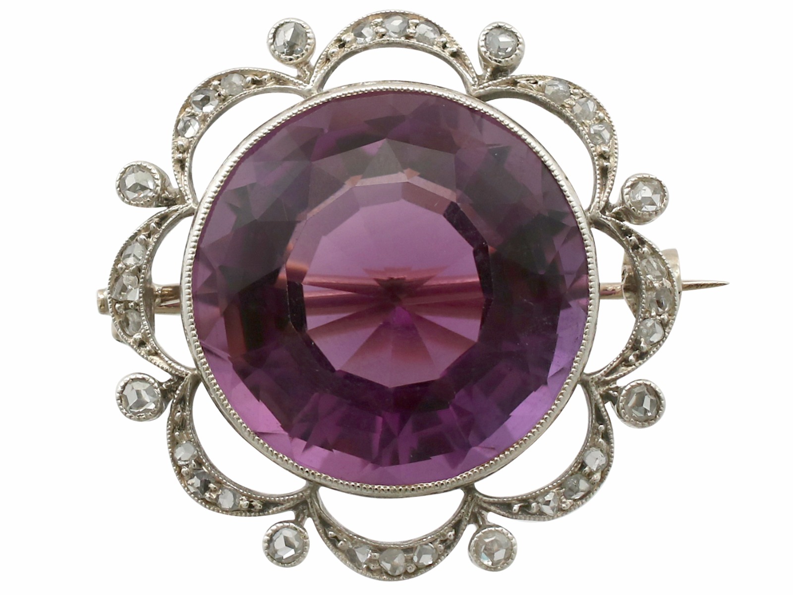 Antique Victorian 26.46ct Amethyst & 0.33ct Diamond, 9ct Yellow Gold & Silver Brooch (1 of 1)