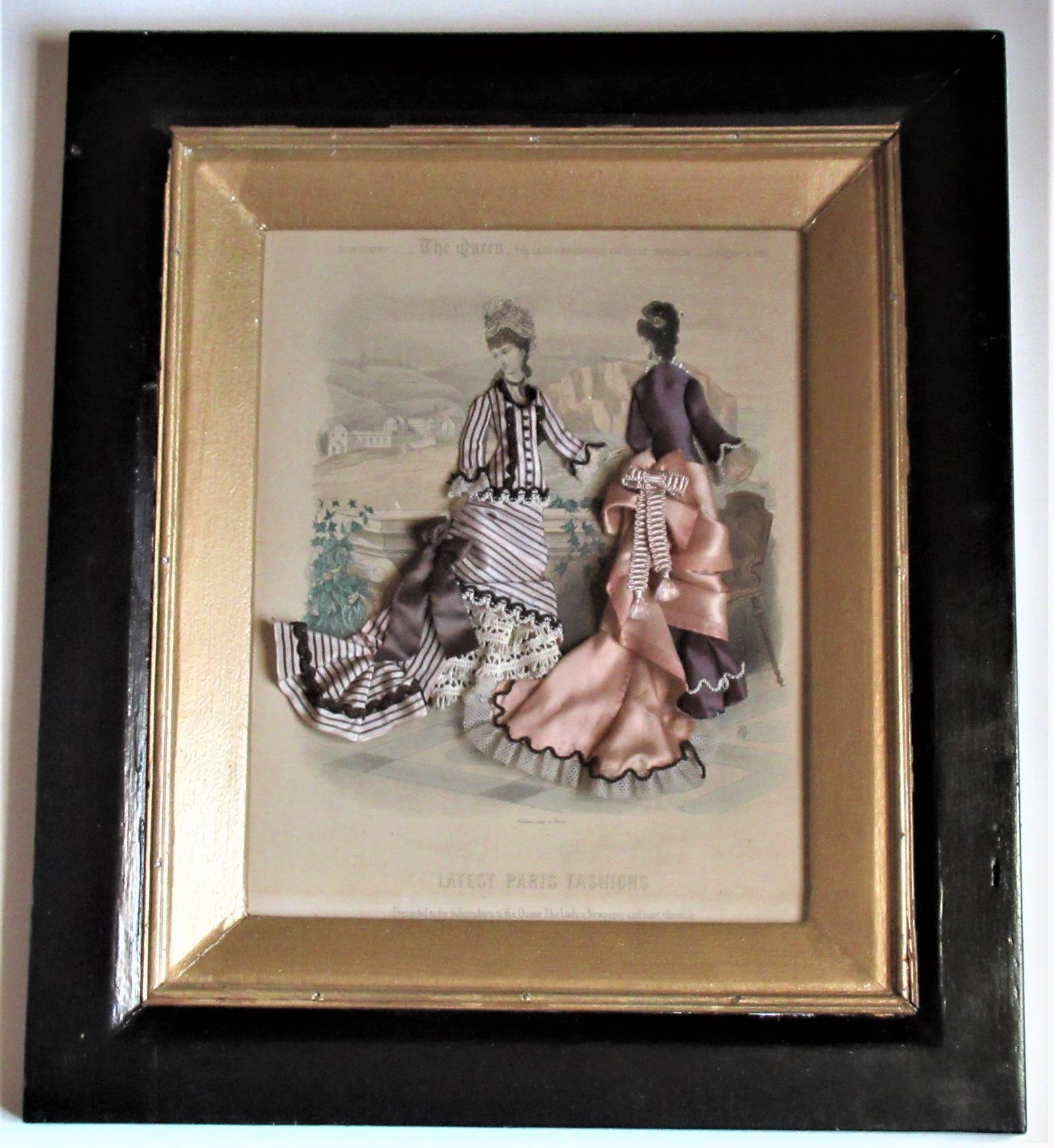Antique Victorian 3-D Fashion Picture, Textile And Print, Original Frame, 1877