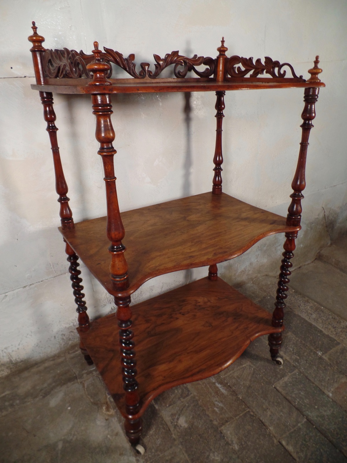 Antique Victorian 3 Tier Barley Twist Mahogany Whatnot Shelves Stand Carved (1 of 1)