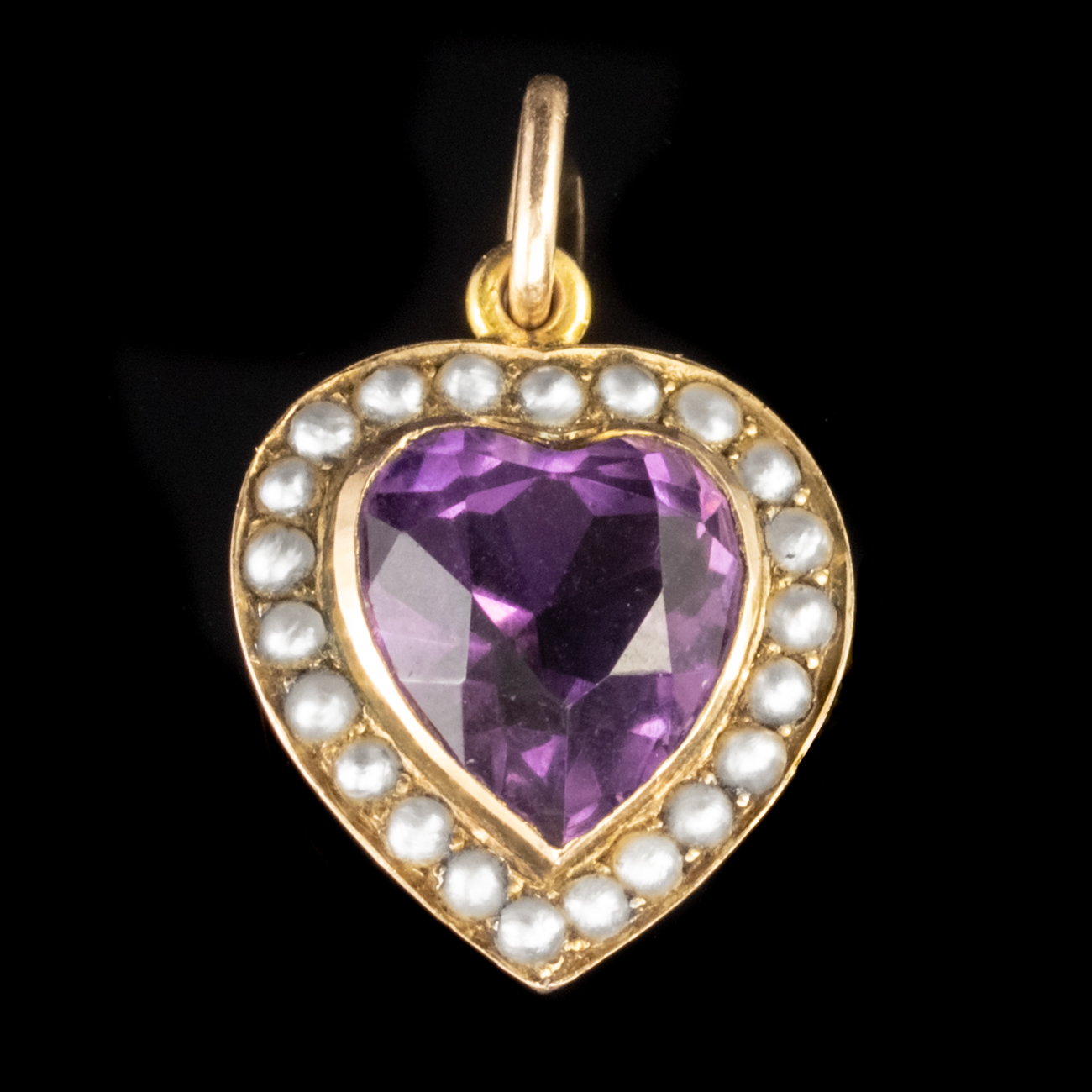 Antique Victorian 3.25ct Amethyst Pearl Heart Pendant 9ct Gold C.1880