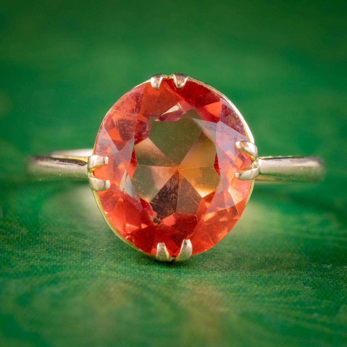 Antique Victorian 4.5ct Mexican Fire Opal Ring 9ct Gold Circa 1900