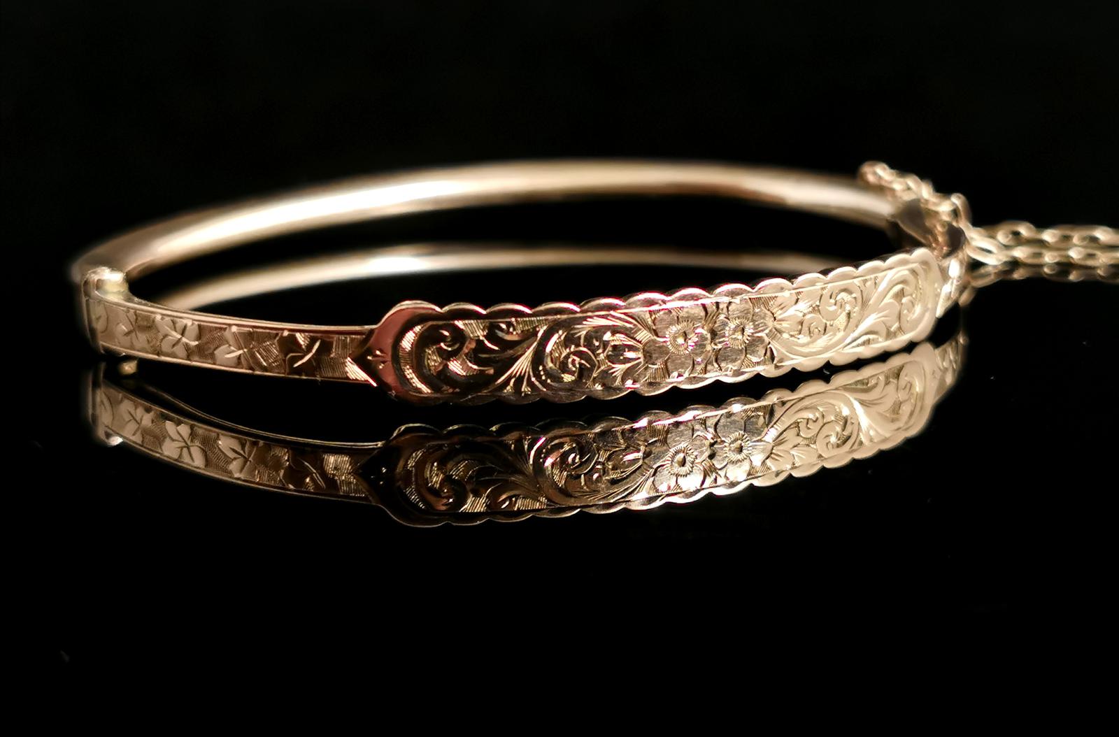 Antique Victorian 9ct Gold Bangle, Floral Engraved