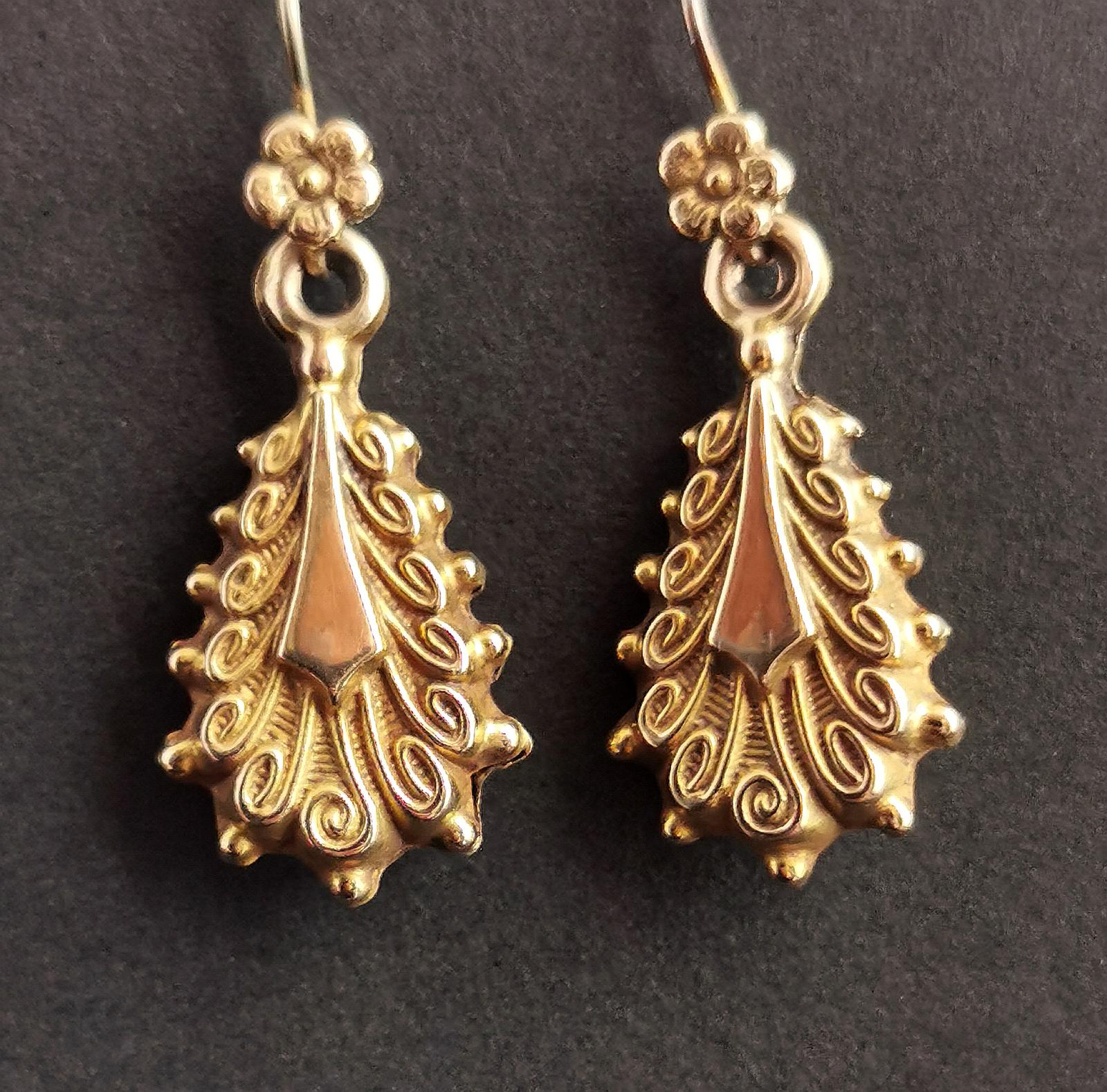 Antique Victorian 9ct Gold Drop, Dangle Earrings