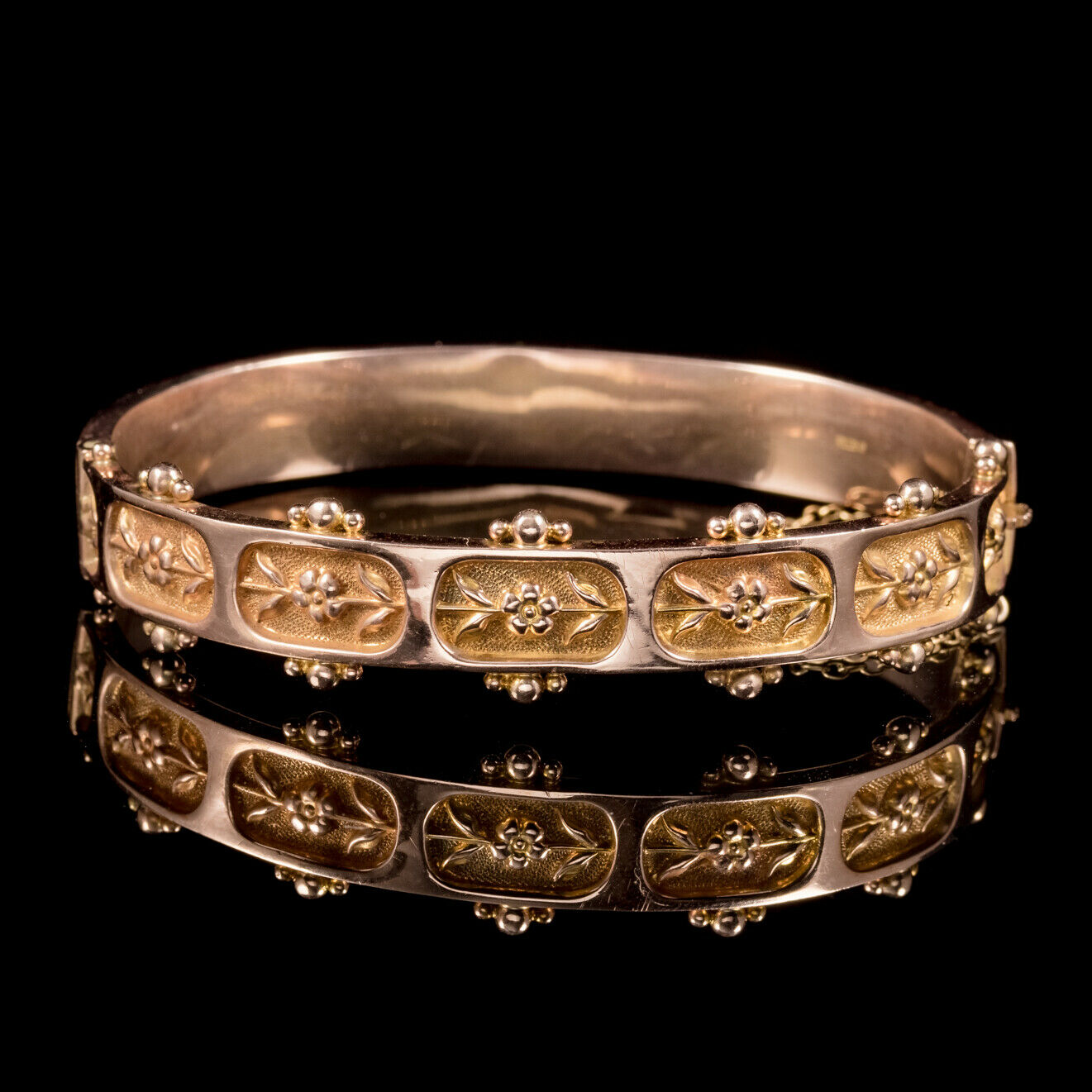 Antique Victorian 9ct Gold Floral Forget Me Not Bangle Dated Birmingham 1865